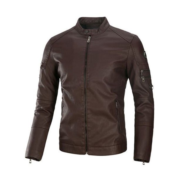 Legen Sie diese exquisite braune Biker-Lederjacke von Decent noch heute in Ihren Warenkorb!