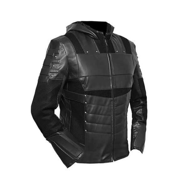 Arrow Oliver Green Black Hooded Leather Jacke