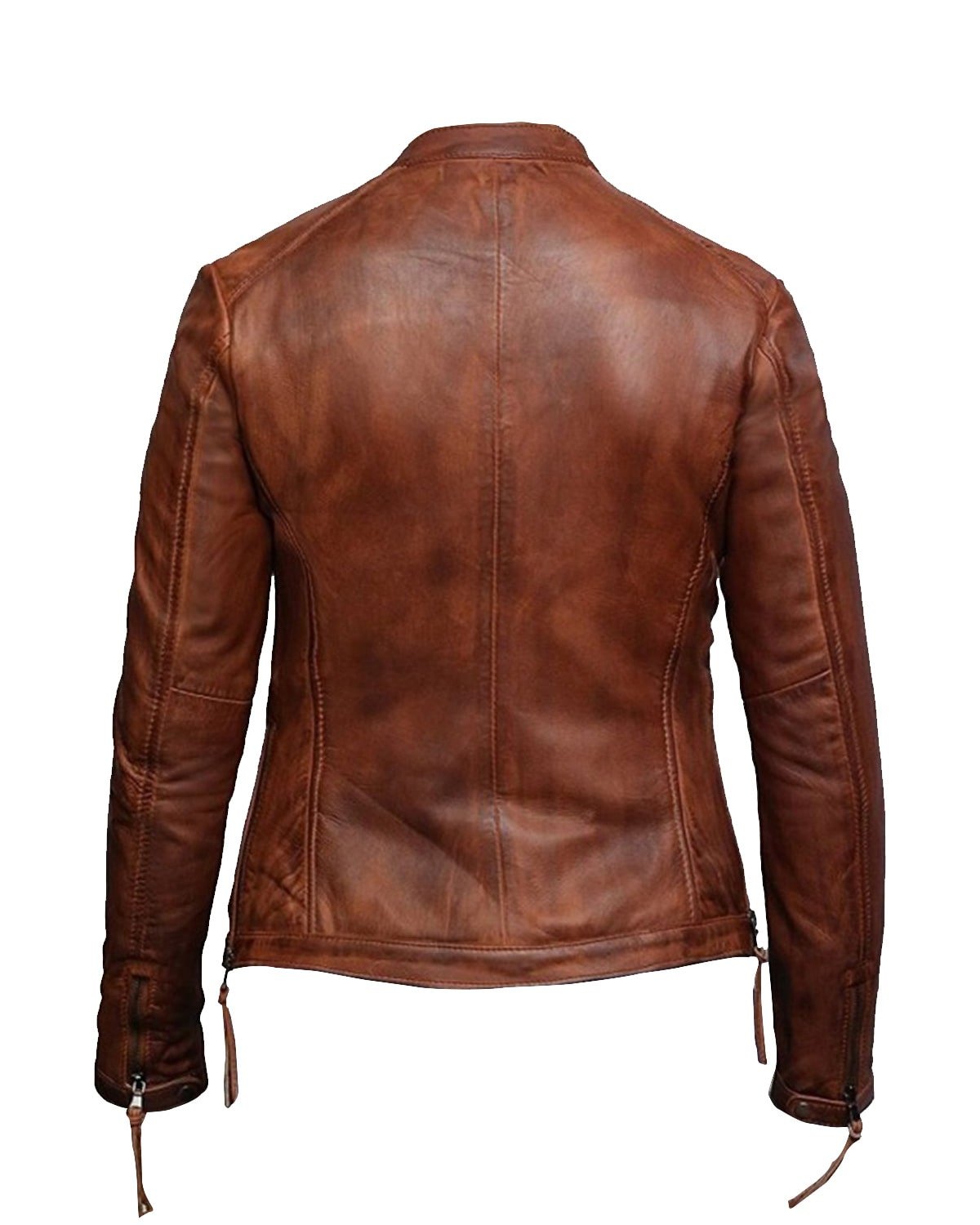 Damen-Bikerjacke „Ayla“ aus gewachstem braunem Leder Jacke