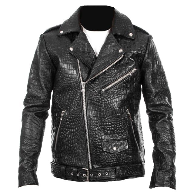 Herren-Bikerjacke aus Krokodilleder mit Prägung Jacke