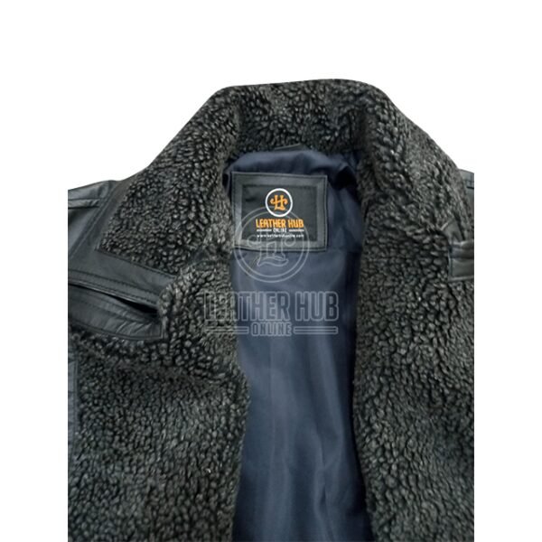 Der übergroße Reverskragen, Großzügig mit sattbraunem Shearling gefüttert, bietet es unvergleichliche Wärme und eine kraftvolle, unverwechselbare Ästhetik.