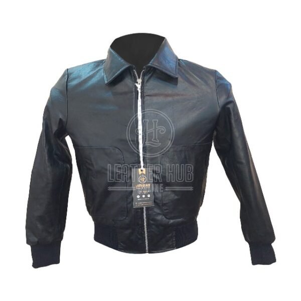 Diese Bomberjacke aus hochwertigem Echtleder mit einem markanten **matten schwarzen Finish** bietet höchsten Tragekomfort und einen unverwechselbaren Stil. Sein elegantes Design, kombiniert mit praktischen Details wie einem robusten YKK-Reißverschluss und einem gerippten Bund, macht es zur idealen Wahl für den Alltag und wertet Ihren Look gleichzeitig auf.