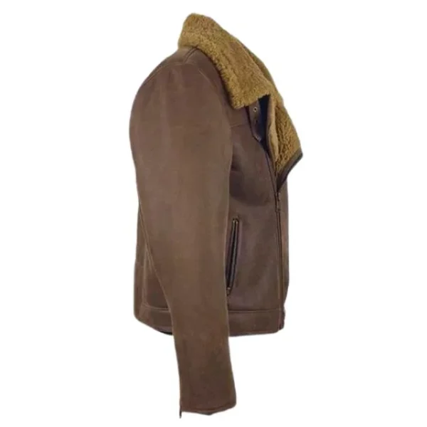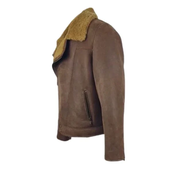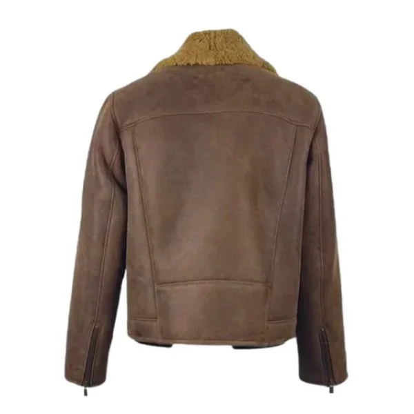 Diese Jacke ist aus **100 % echtem Schaffellleder** mit einem satten Braunton gefertigt und luxuriös mit weichem Kunstfell gefüttert, was für hervorragende Wärmeisolierung und ein angenehmes Tragegefühl sorgt. Der klassische Reverskragen und der robuste YKK-Reißverschluss garantieren einen sicheren Sitz und zeitlosen Stil – der perfekte Begleiter für die kalte Jahreszeit.