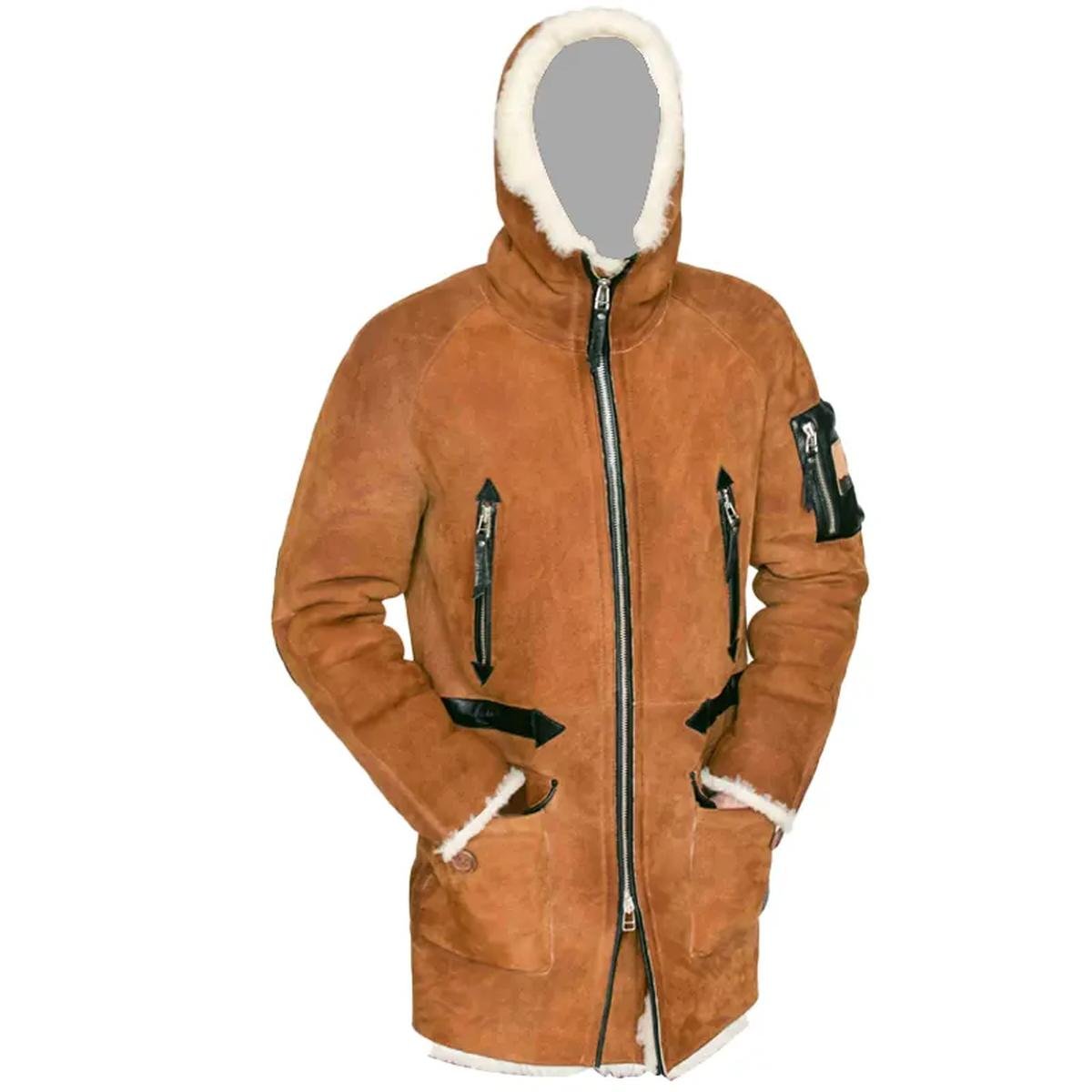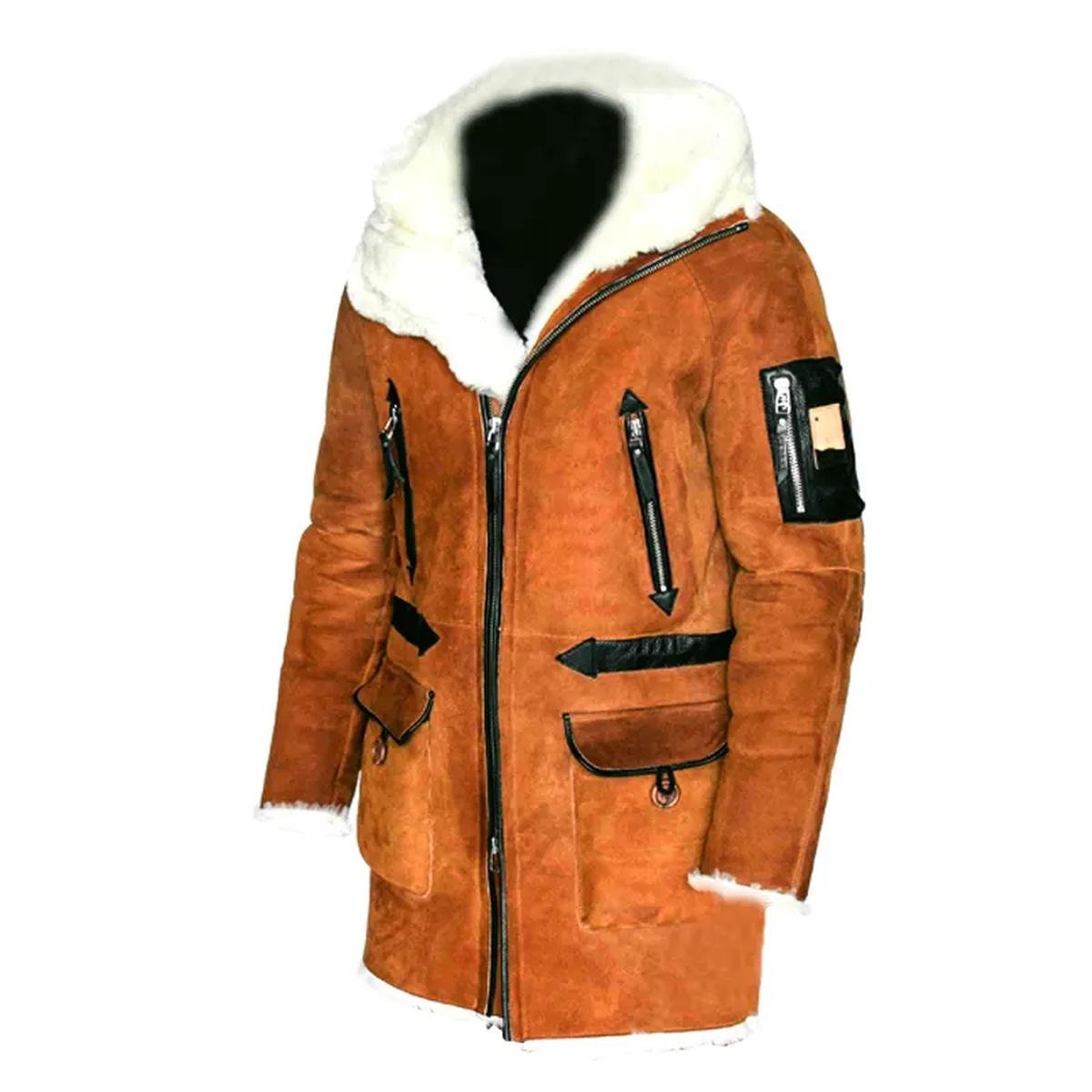 Erleben Sie unvergleichlichen Luxus und praktisches Design mit unserem braunen Wildleder-Kapuzenmantel für Herren. Dieser lange Mantel aus hochwertigem, echtem Wildleder besticht durch seinen satten Braunton und sein weiches, mattes Finish, das Eleganz ausstrahlt. Entworfen für Komfort und Stil, verfügt es über ein glattes Viskosefutter, einen funktionalen Kapuzenkragen und einen robusten Frontreißverschluss und ist somit ein unverzichtbares Kleidungsstück für die Übergangszeit.