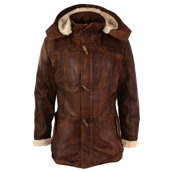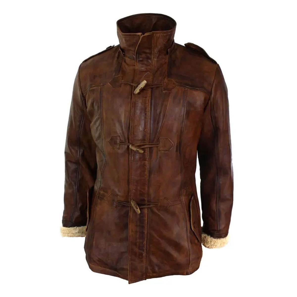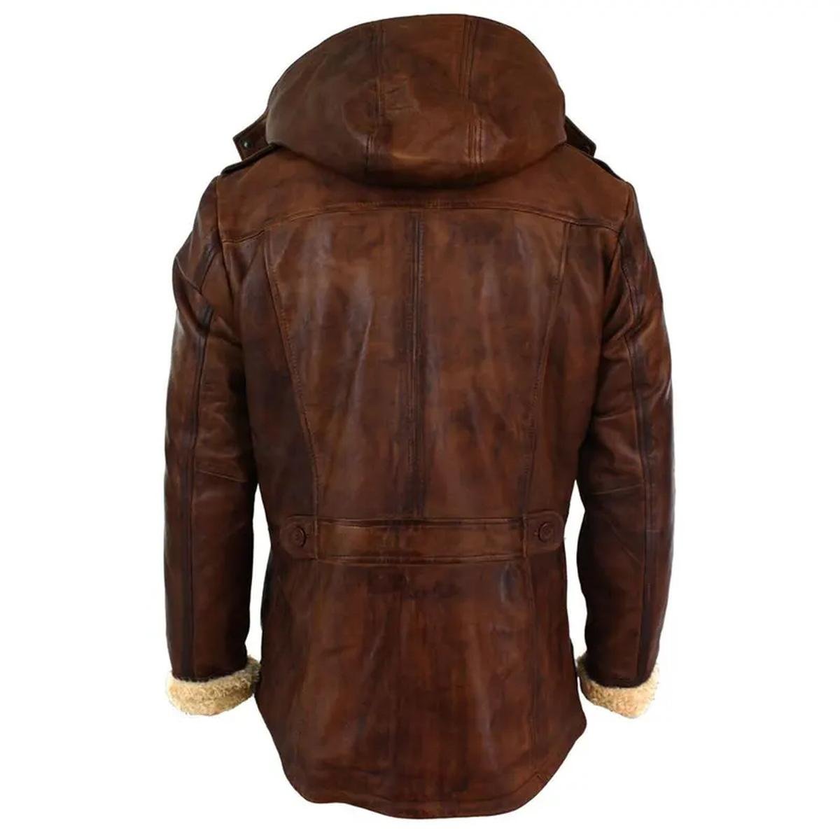 Produktspezifikation: Material: 100 % echtes Leder; Innenfutter: Weißes Kunstfellfutter; Verschluss: Knopfverschluss; Kragen: Reverskragen; Ärmel: Lange Ärmel; Farbe: Braun