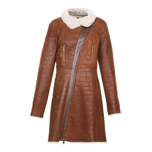 Dieser elegante, klassische Ledermantel ist zeitlos und beständig gegen Modetrends. Gefertigt aus hochwertigem, echtem Lammleder mit einzigartigem Krokodilmuster, bietet er optimalen Wärmeschutz und betont gleichzeitig Ihre Silhouette. Mit einem eleganten, asymmetrischen Frontreißverschluss und traditionellen Lammfellbesätzen bietet es maximalen Komfort, Wärme und eine atemberaubende, dauerhafte Passform.
