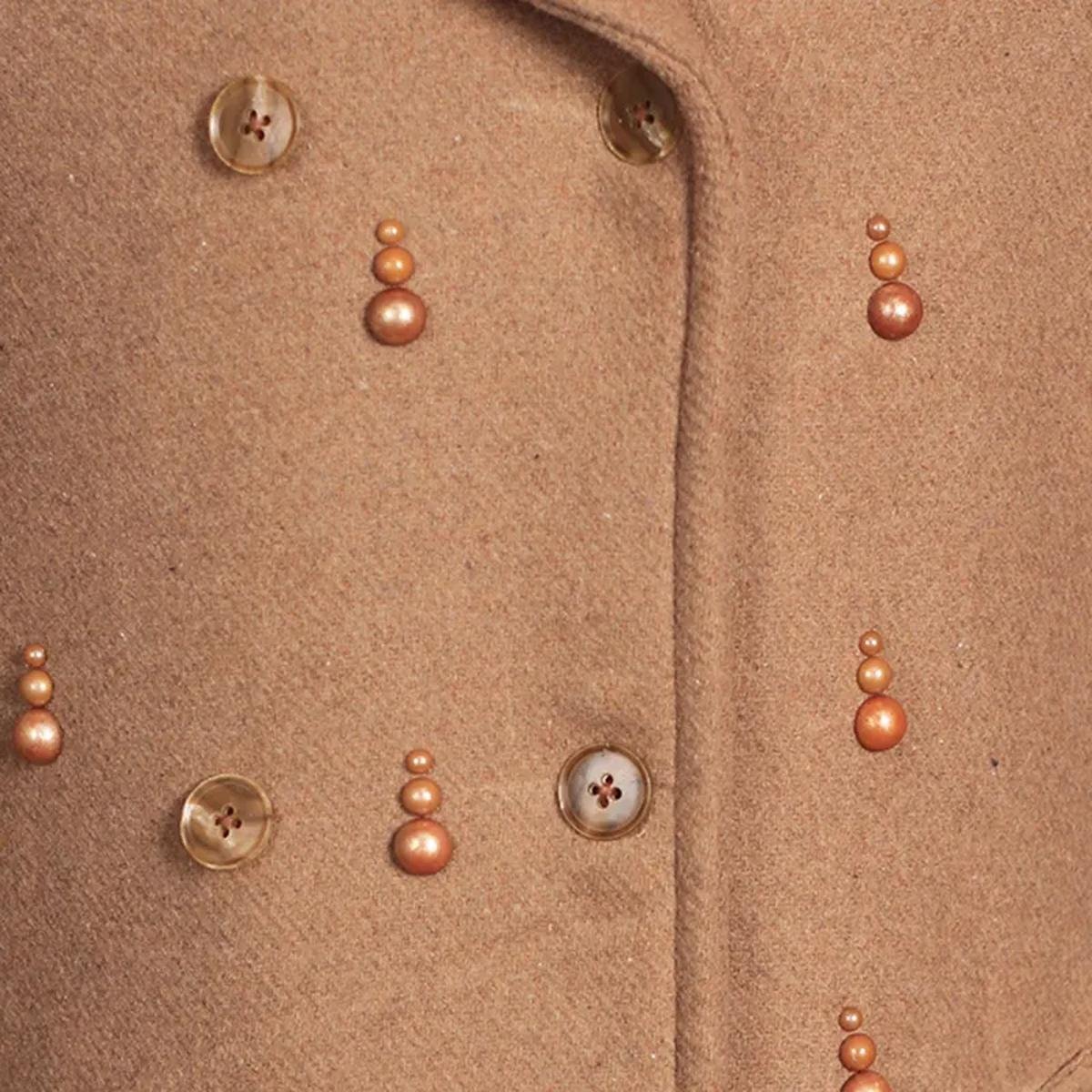 | Verschluss | Einreihiger Knopfverschluss (verzierte goldfarbene Knöpfe) |