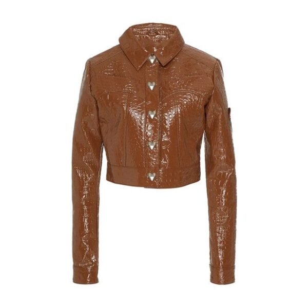 Braune Herren-Cowboylederjacke mit Lackleder Finish