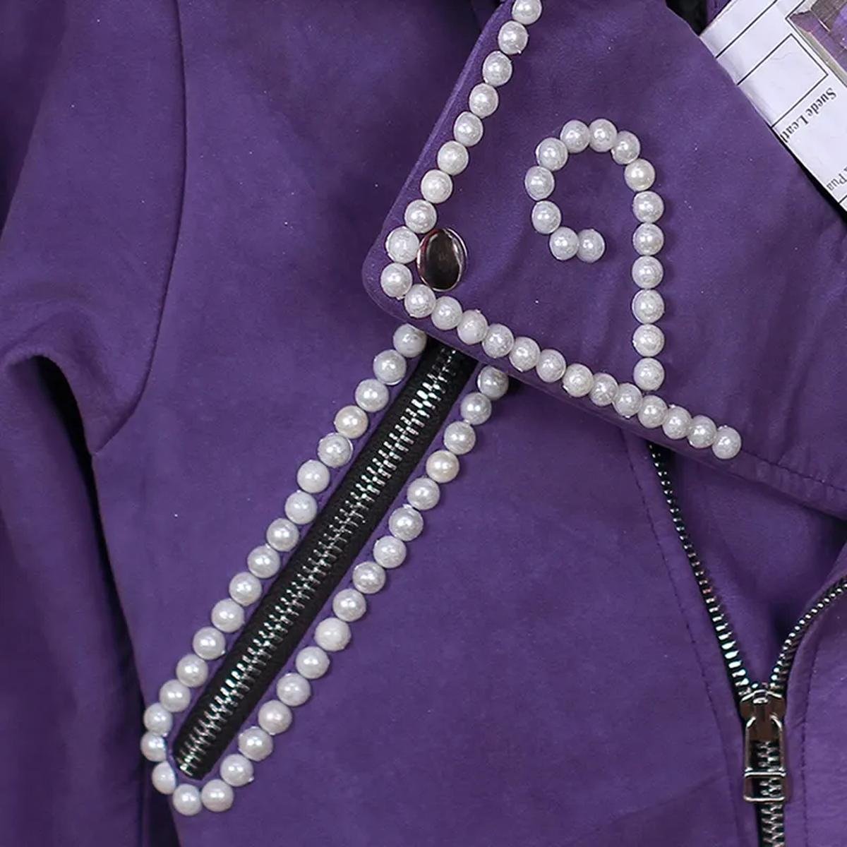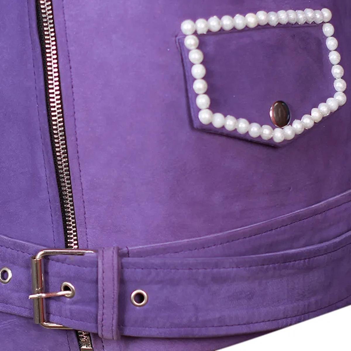 Legen Sie diese atemberaubende Bikerjacke aus lila Schaffell noch heute in Ihren Warenkorb!
