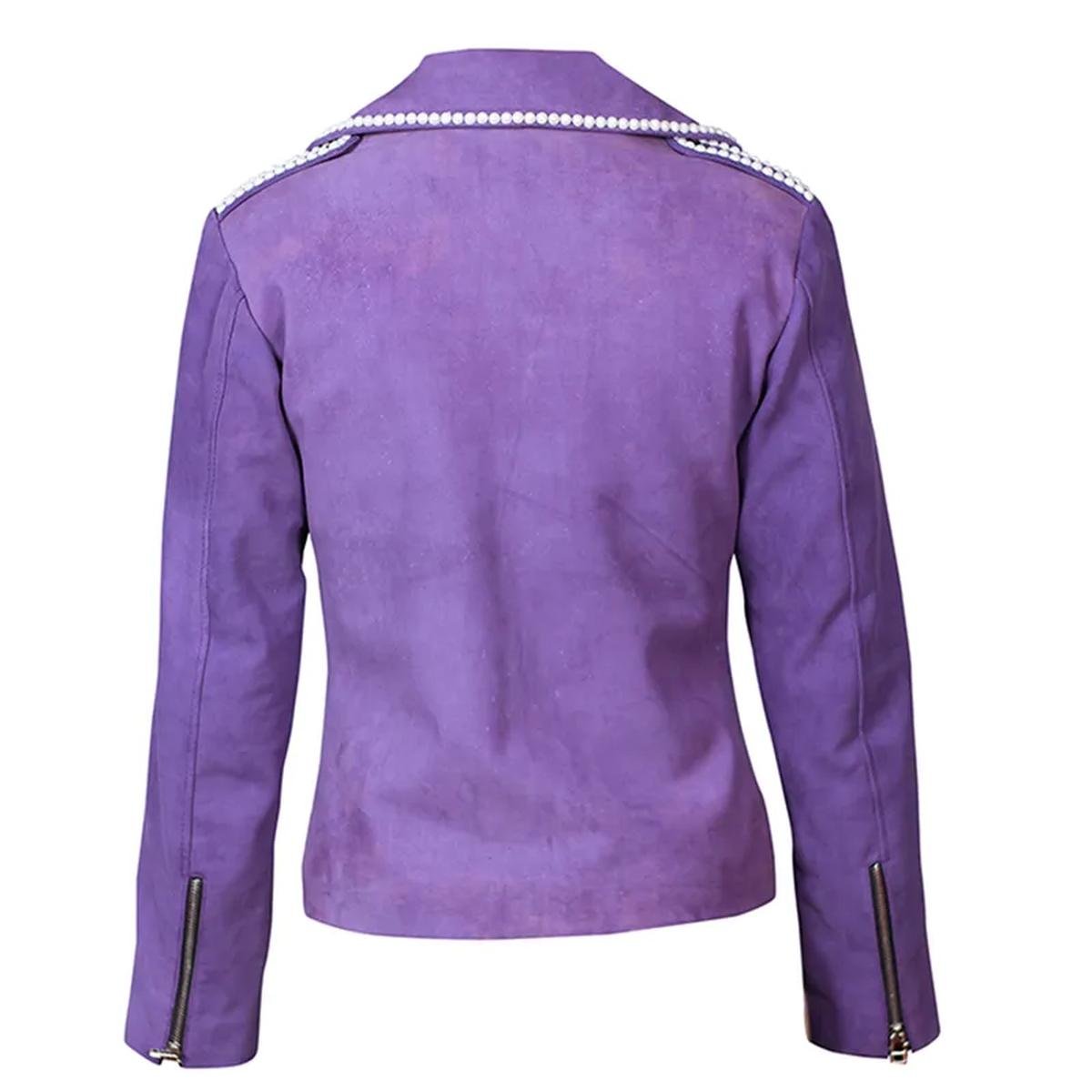 Setzen Sie ein starkes Statement mit unserer lila Biker-Lederjacke für Damen aus Schaffell, die mit auffälligen Metallic-Nieten verziert ist. Diese Jacke aus 100 % echtem Schaffell bietet unvergleichliche Weichheit, Langlebigkeit und natürliche Wärmeisolation und ist somit eine luxuriöse und komfortable Wahl für jede Jahreszeit.