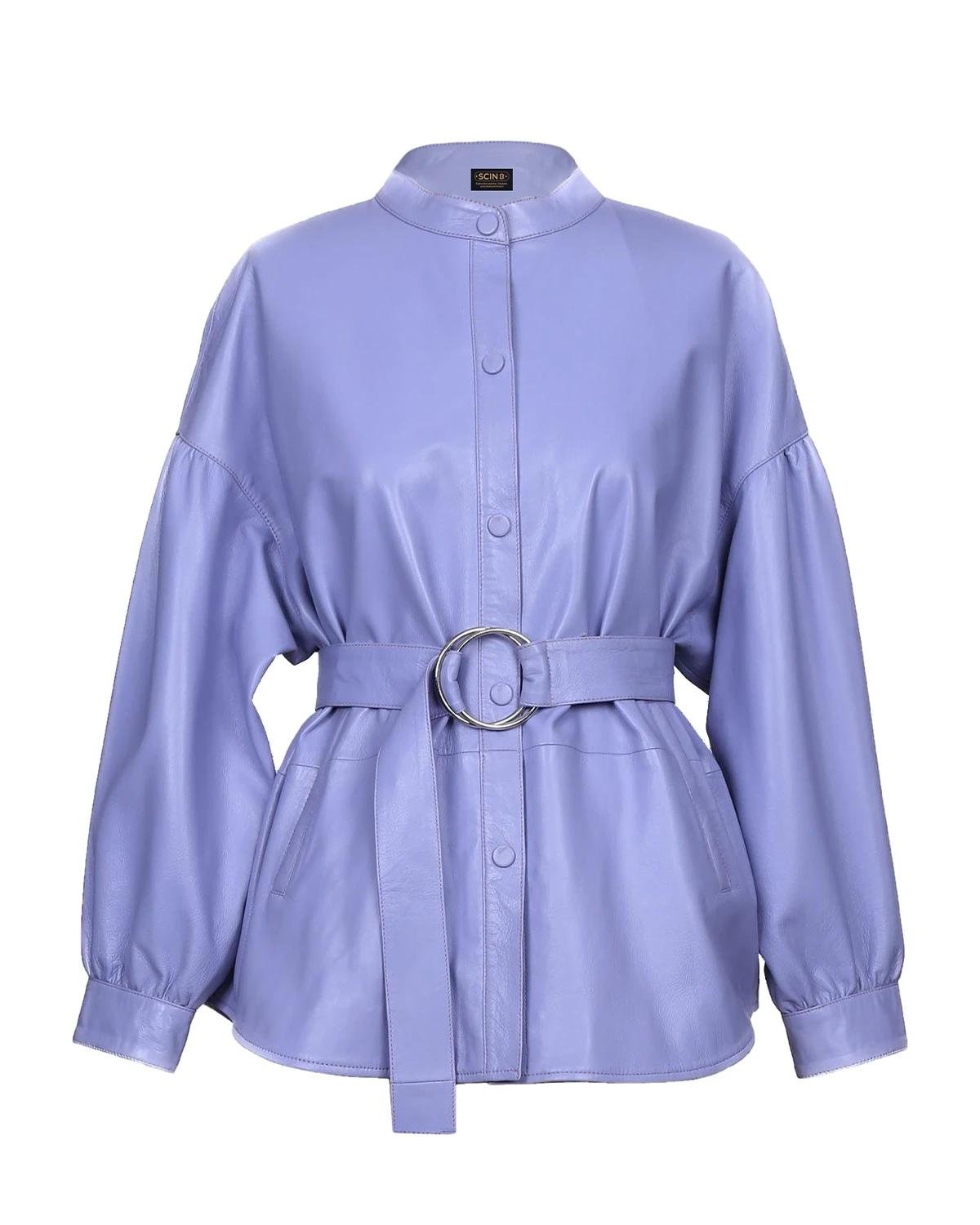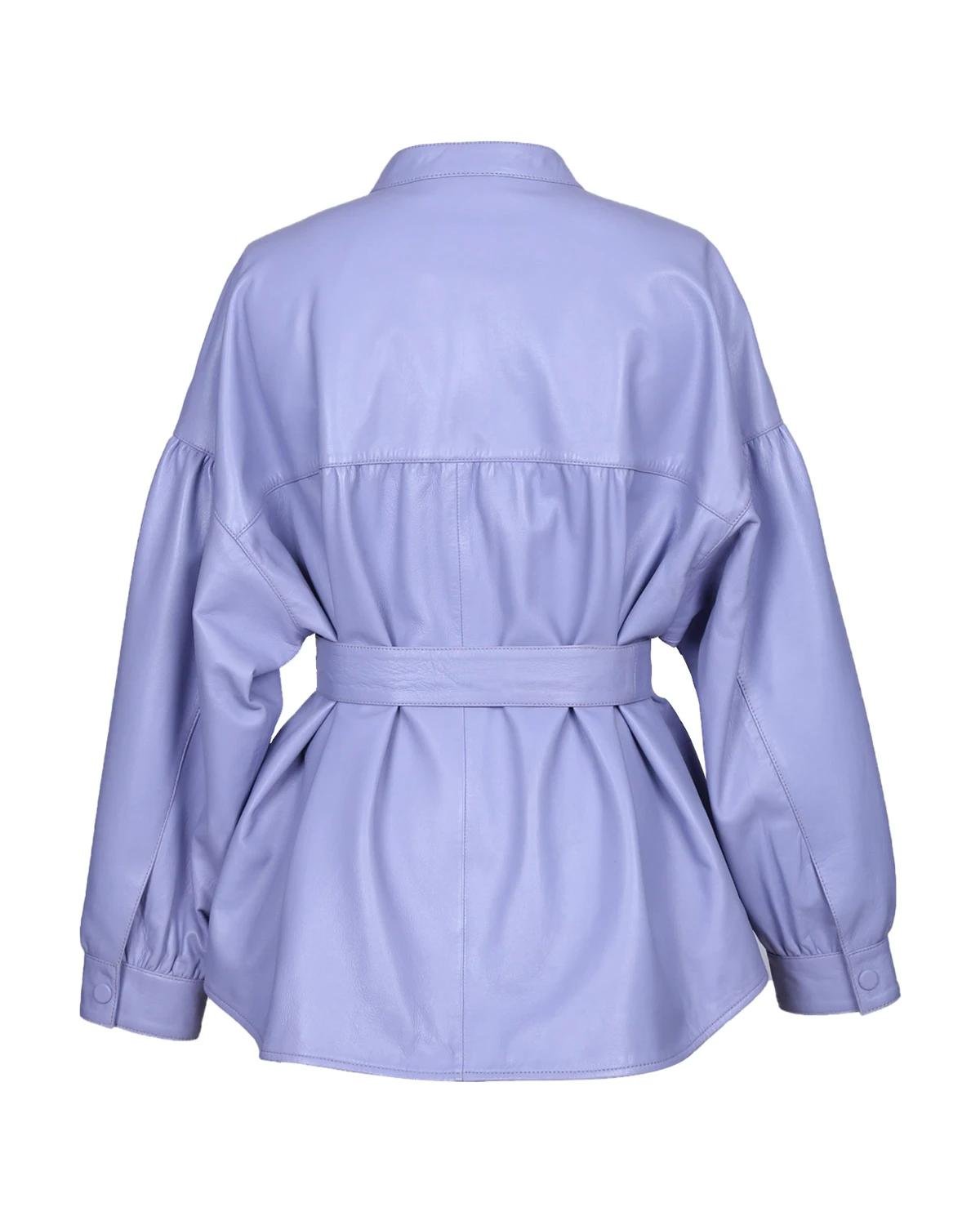 Fügen Sie diese exquisite Hemdjacke aus lavendelfarbenem Schaffellleder noch heute Ihrem Warenkorb hinzu!