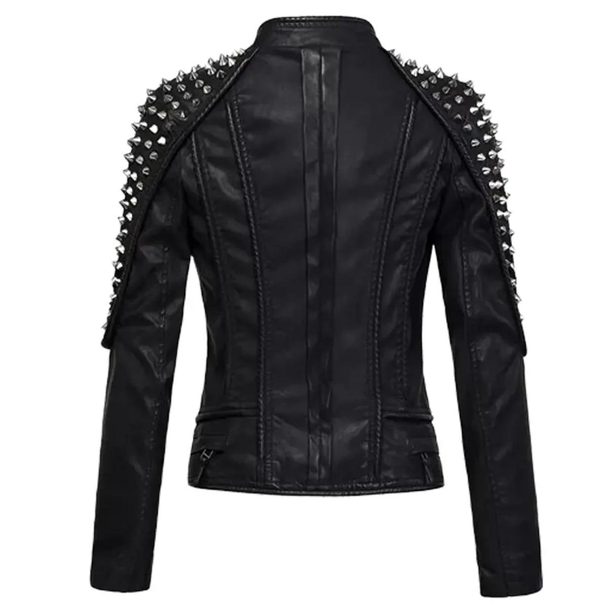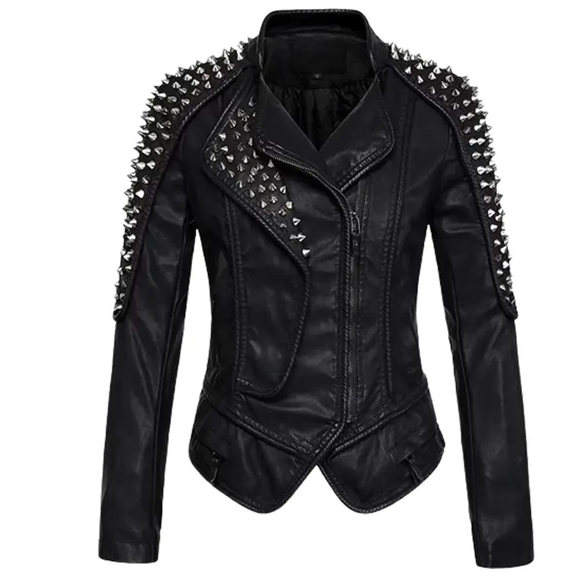 Legen Sie Ihre handgefertigte Damen-Lederjacke im Punk-Stil mit Nietenbesatz noch heute in Ihren Warenkorb!
