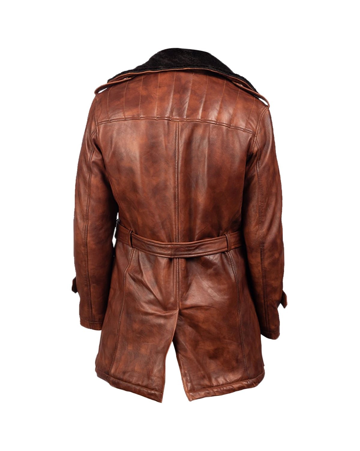 Der Dean Coat ist aus hochwertigem Echtleder gefertigt und besticht durch seine satte, braune Used-Optik. Er bietet ein robustes und zugleich luxuriöses Tragegefühl. Dieser Mantel wurde so designt, dass er jedes Outfit mühelos ergänzt – von lässigen Jeans bis hin zu eleganten Hosen. Dank seines flauschigen Kunstfellfutters bietet er außergewöhnliche Wärme und ist somit die ideale Wahl für kühlere Tage.