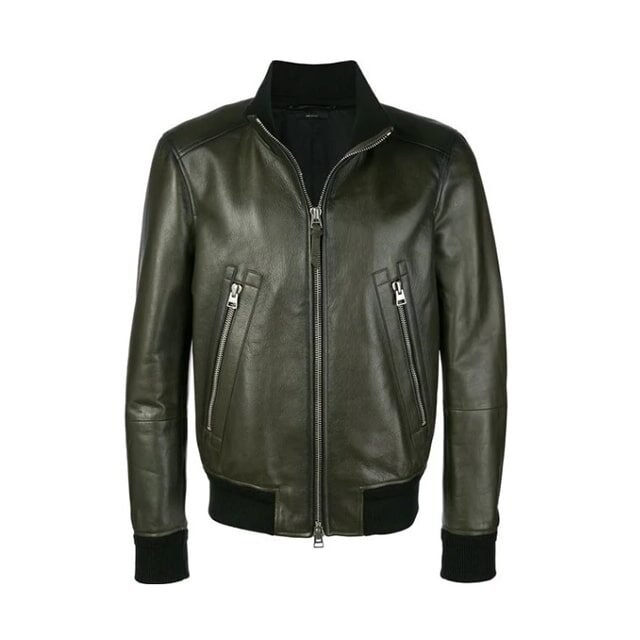 Die schlichte grüne Bomberjacke aus Leder Jacke