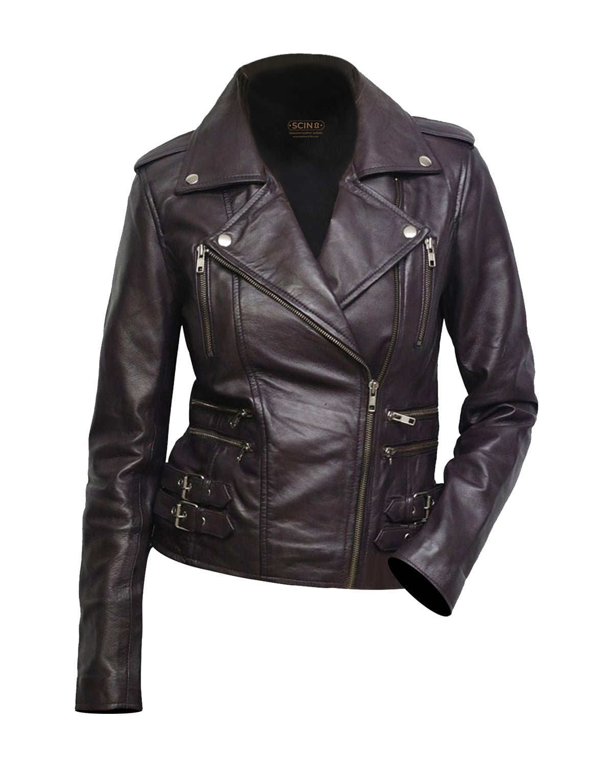 Ergänzen Sie Ihre Kollektion noch heute mit der Elsa Retro Biker Lederjacke!