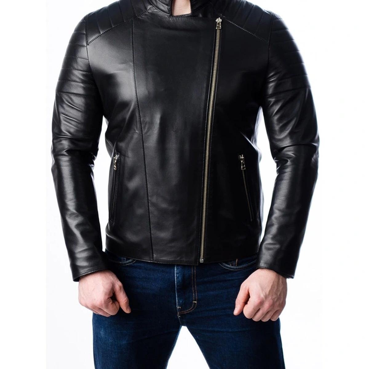Erleben Sie die ultimative Verschmelzung von kerniger Attitüde und raffinierter Handwerkskunst mit unserer gesteppten Motorradlederjacke für Herren. Sorgfältig aus hochwertigem, schwarzem Echtleder gefertigt, verkörpert diese Jacke die robuste, dynamische Ausstrahlung eines echten Bikers und bietet gleichzeitig außergewöhnlichen Komfort und Stil. Sein einzigartiges Steppmuster und das asymmetrische Design sorgen dafür, dass Sie sich von der Masse abheben.