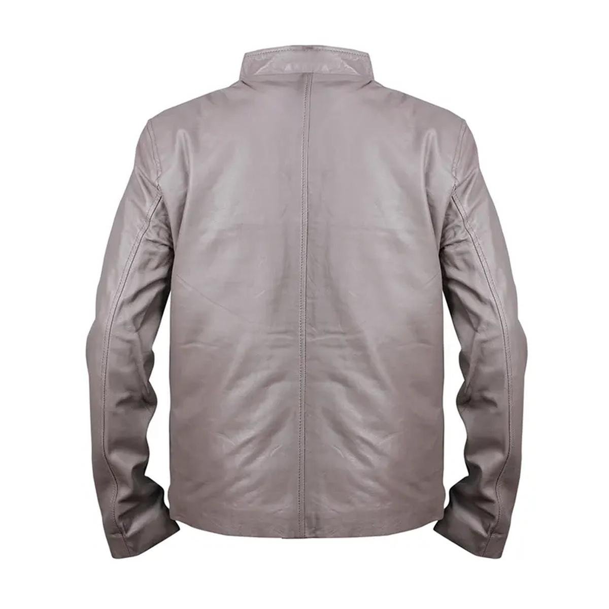Graue Cafe-Racer-Lederjacke für Herren Jacke