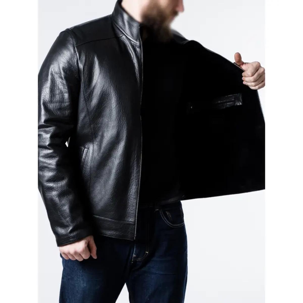 Legen Sie Ihre handgefertigte Bikerjacke aus schwarzem Schaffell noch heute in den Warenkorb!