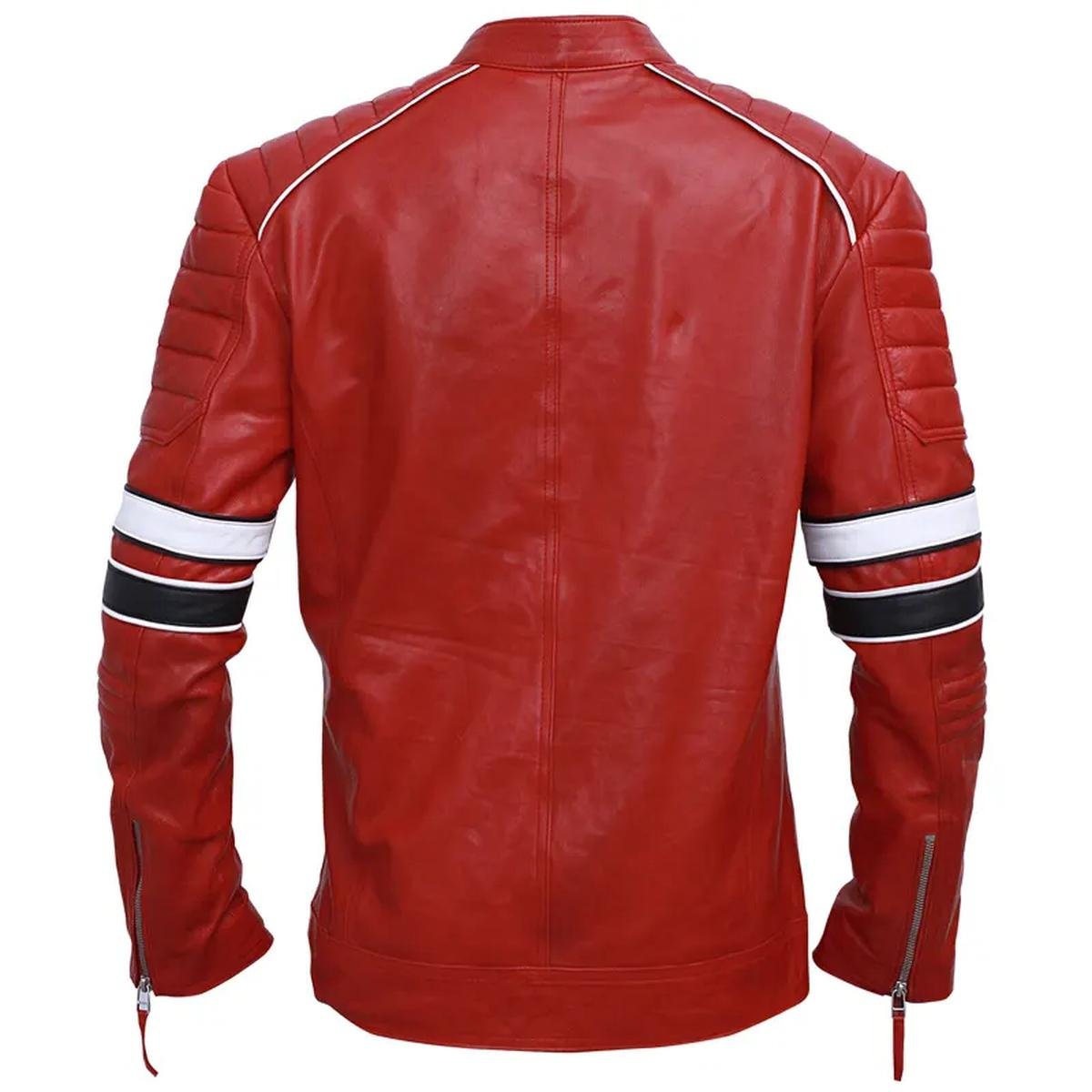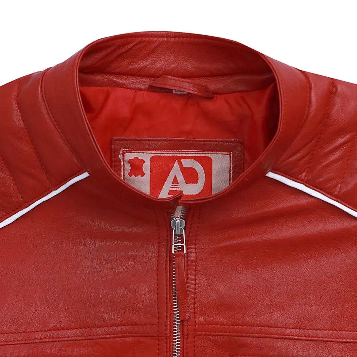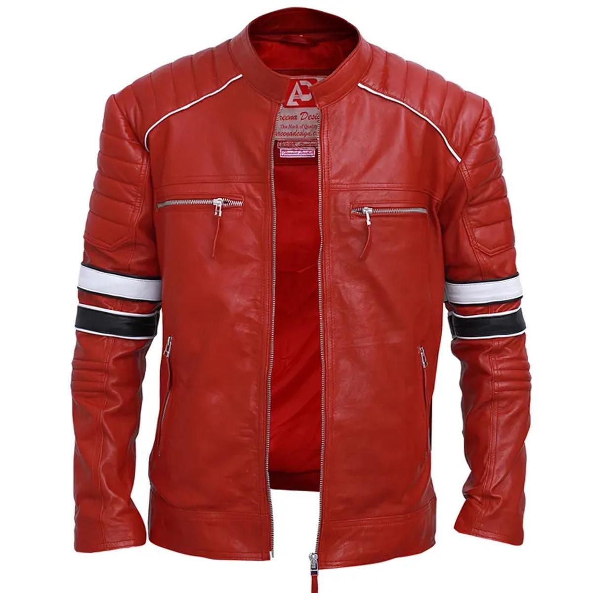 Legen Sie diese handgefertigte, rot-gestreifte Cafe-Racer-Lederjacke noch heute in Ihren Warenkorb!