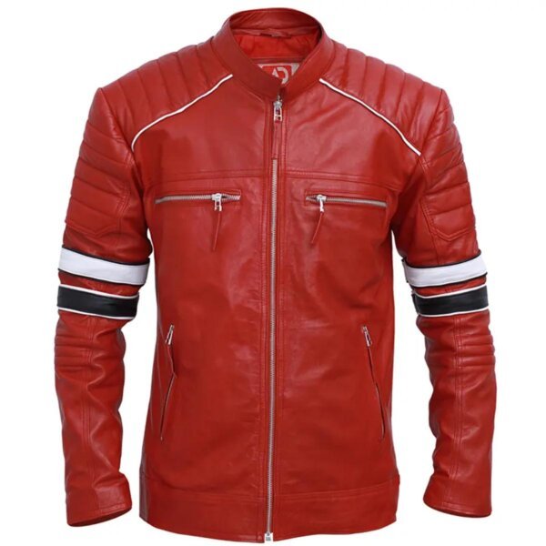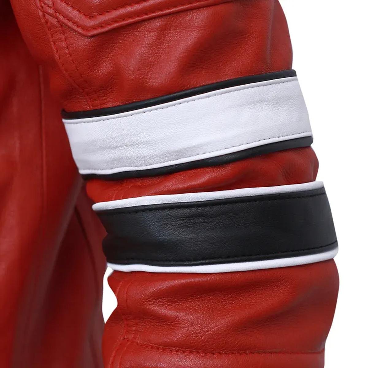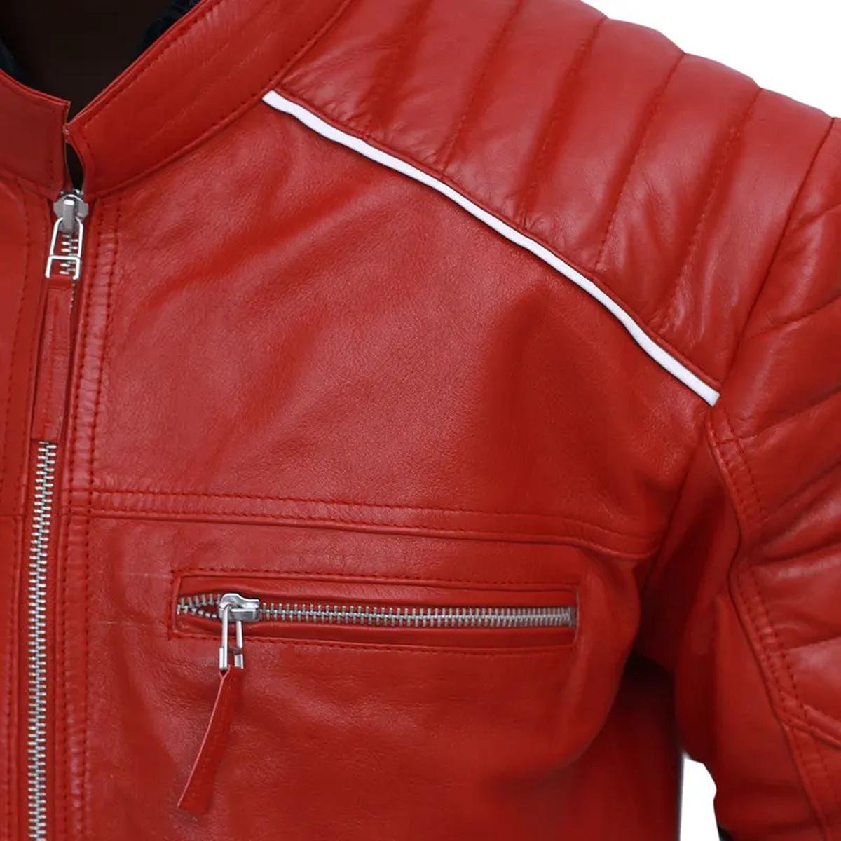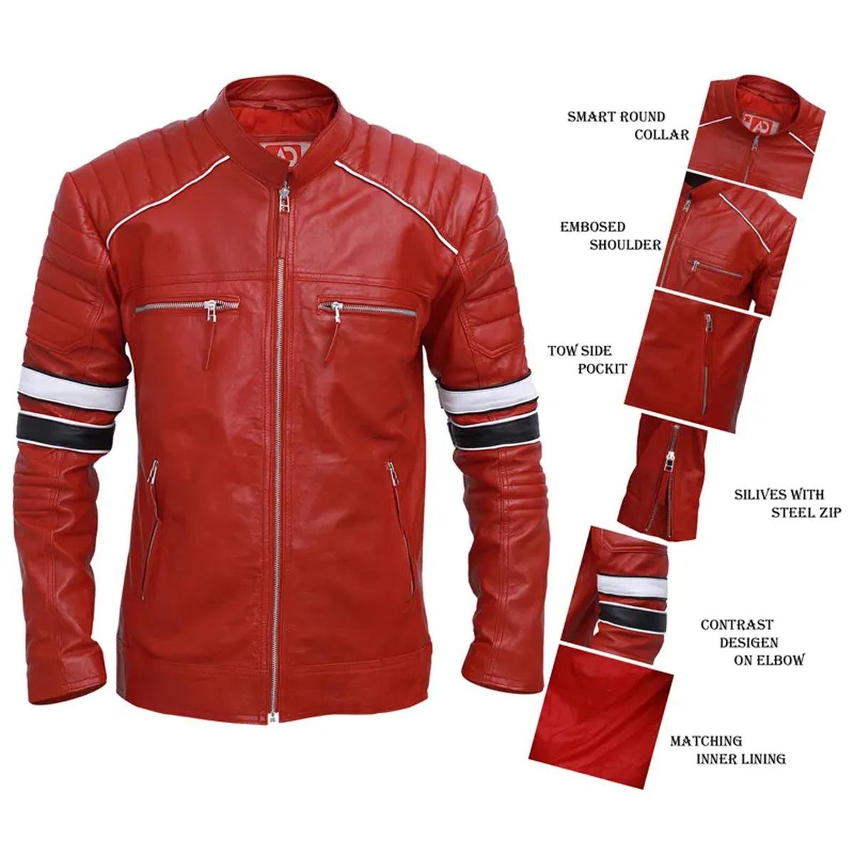 Legen Sie diese handgefertigte, rot-gestreifte Cafe-Racer-Lederjacke noch heute in Ihren Warenkorb!