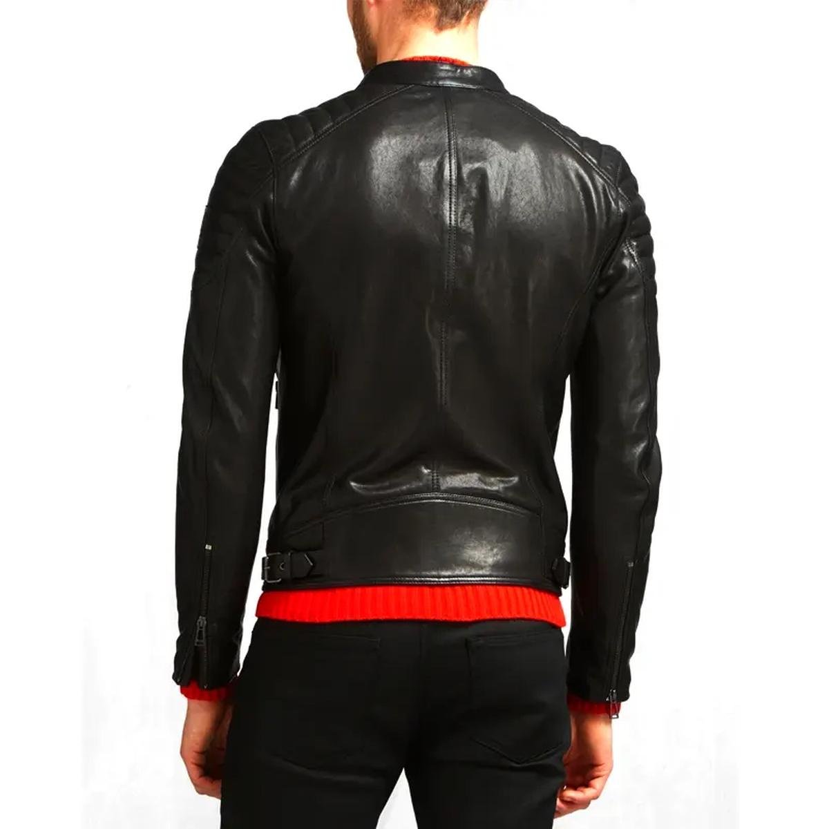 Die schwarze Lederjacke mit dem markanten Stehkragen hat ihre Wurzeln im minimalistischen „Cafe Racer“-Stil, der in den 1960er-Jahren in der britischen Motorradkultur entstand. Fahrer, die zwischen den Straßencafés hin und her rasten, brauchten ein stromlinienförmiges, schützendes Kleidungsstück, das bei hohen Geschwindigkeiten nicht im Wind flatterte. Aus diesem praktischen Bedürfnis entwickelte sich schnell ein ikonisches Design: eine eng anliegende Jacke, oft mit einem schlichten Stehkragen und praktischen Reißverschlüssen, die Rebellion, Geschwindigkeit und elegante Funktionalität verkörpert.