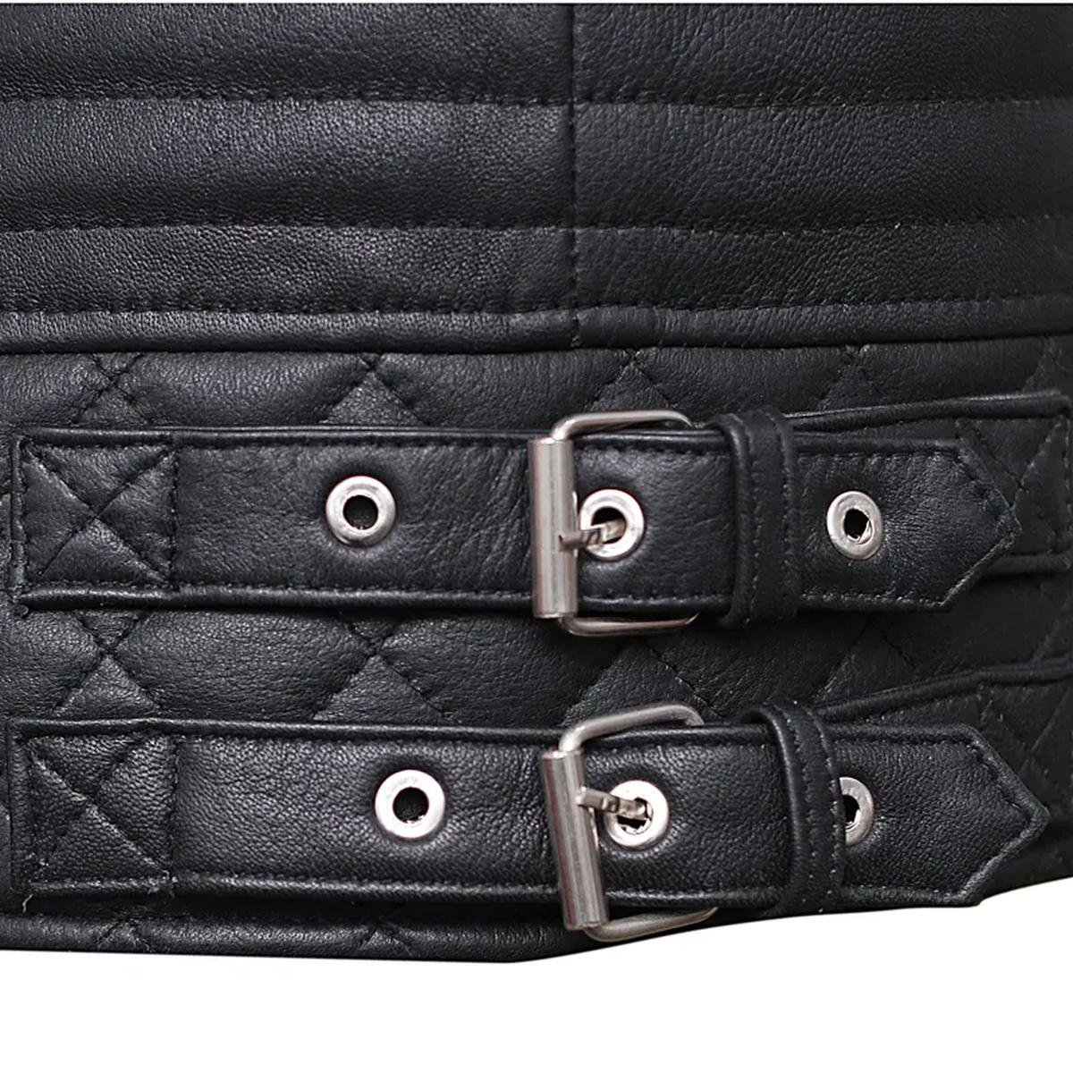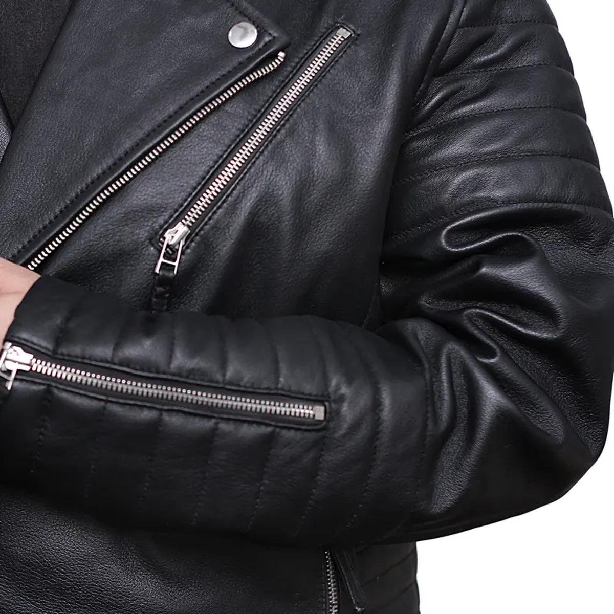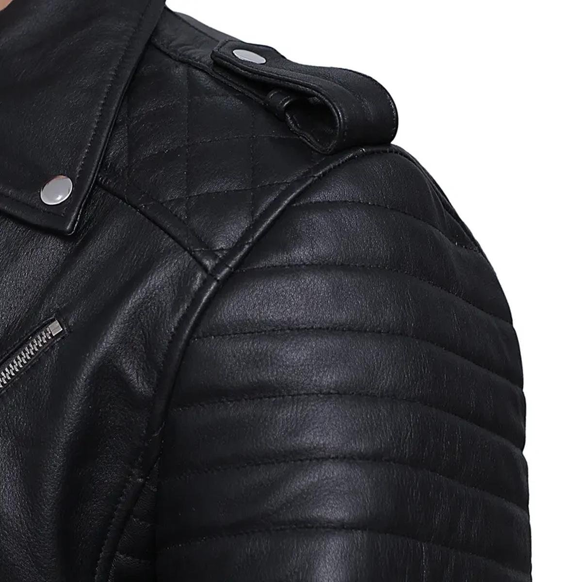 Die **Motorrad-Lederjacke für Herren im Black Diamond Design** aus hochwertigem, echtem Schafsleder bietet eine unvergleichliche Kombination aus Stil, Komfort und Langlebigkeit. Ihr elegantes schwarzes Finish und das weiche Viskose-Innenfutter sorgen für optimale Wärme und ein luxuriöses Tragegefühl auf der Haut. Perfekt, um ein klares Statement zu setzen, egal ob beim Radfahren, auf einer Party oder einfach im Stadtverkehr.