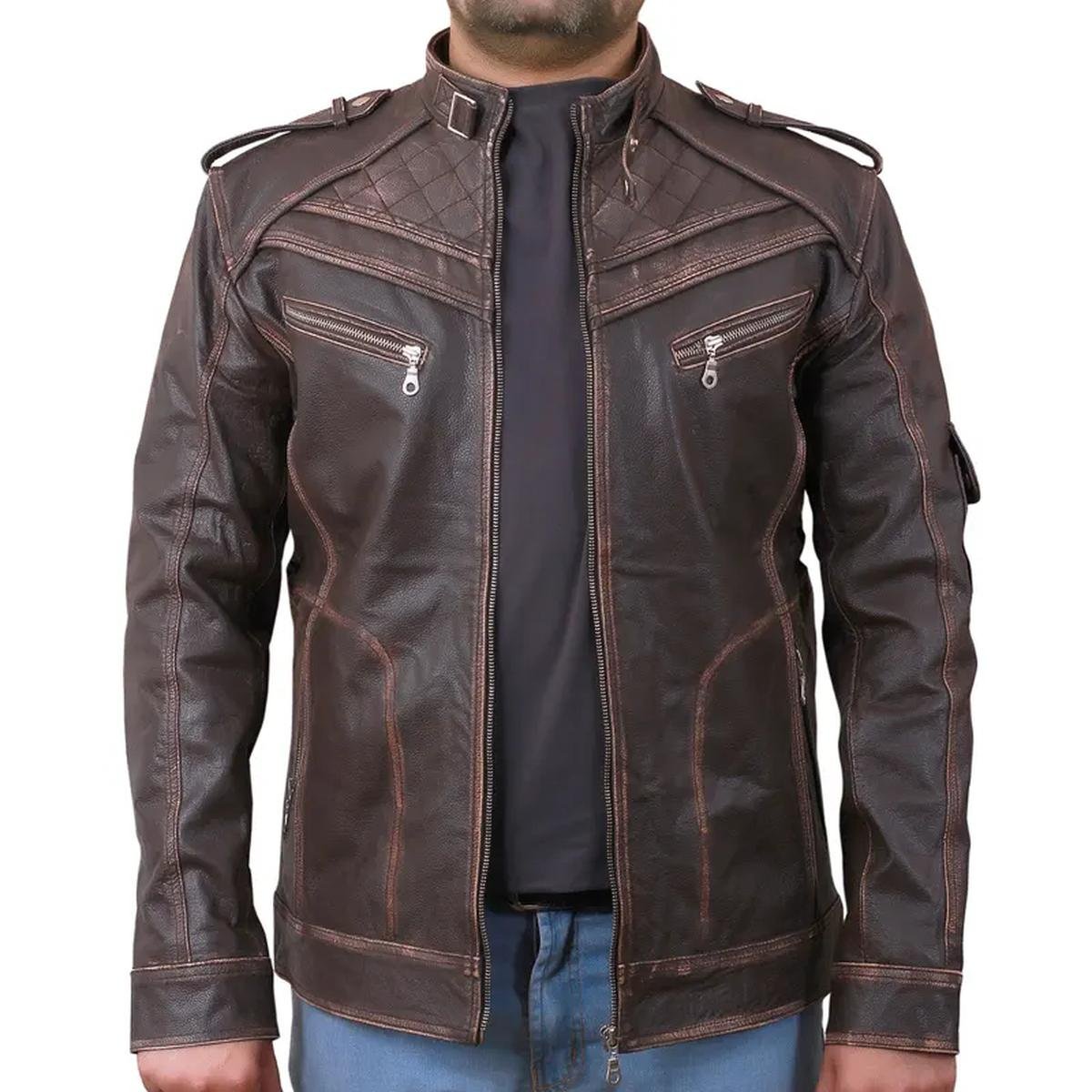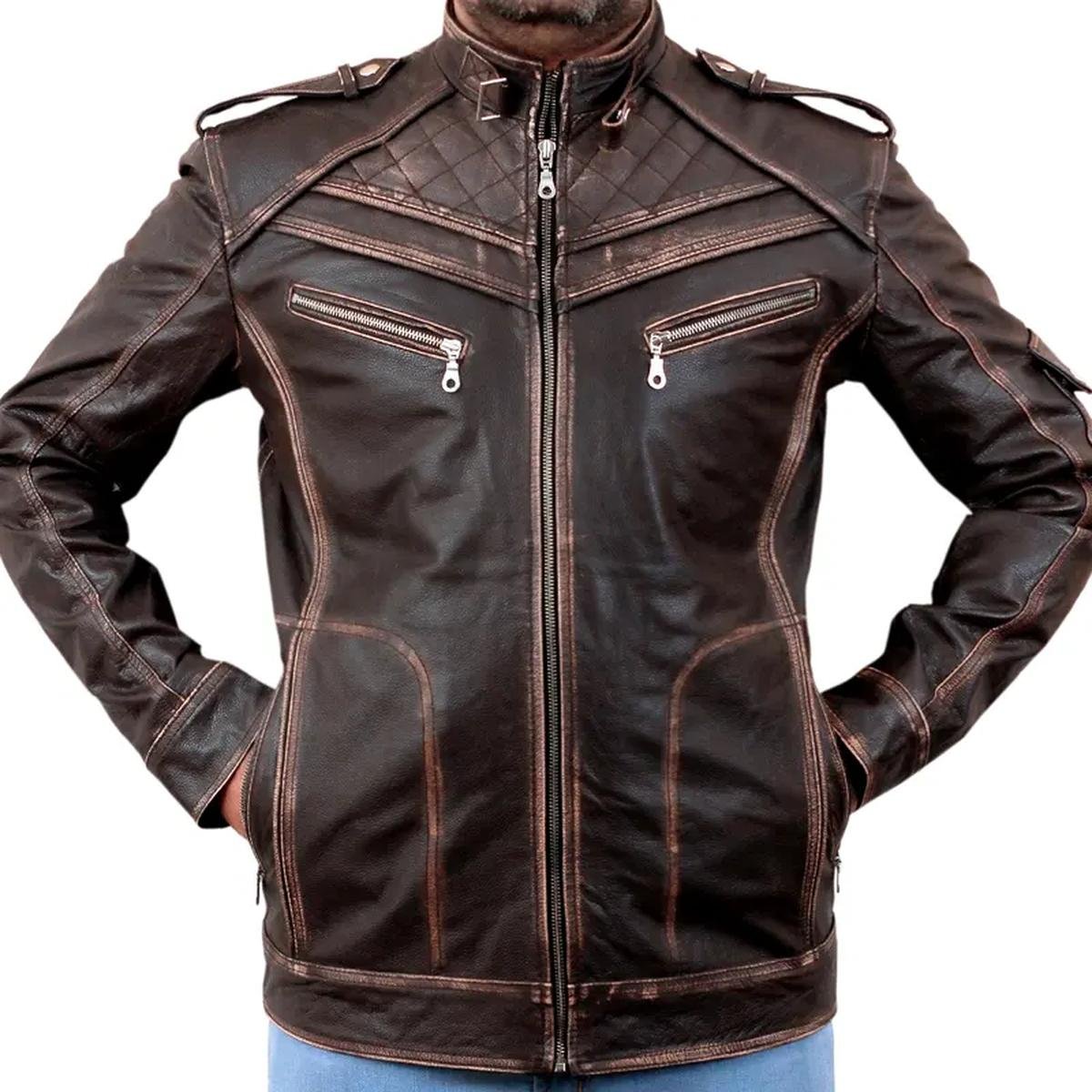 Herren-Retro-Bikerjacke aus echtem Leder Jacke