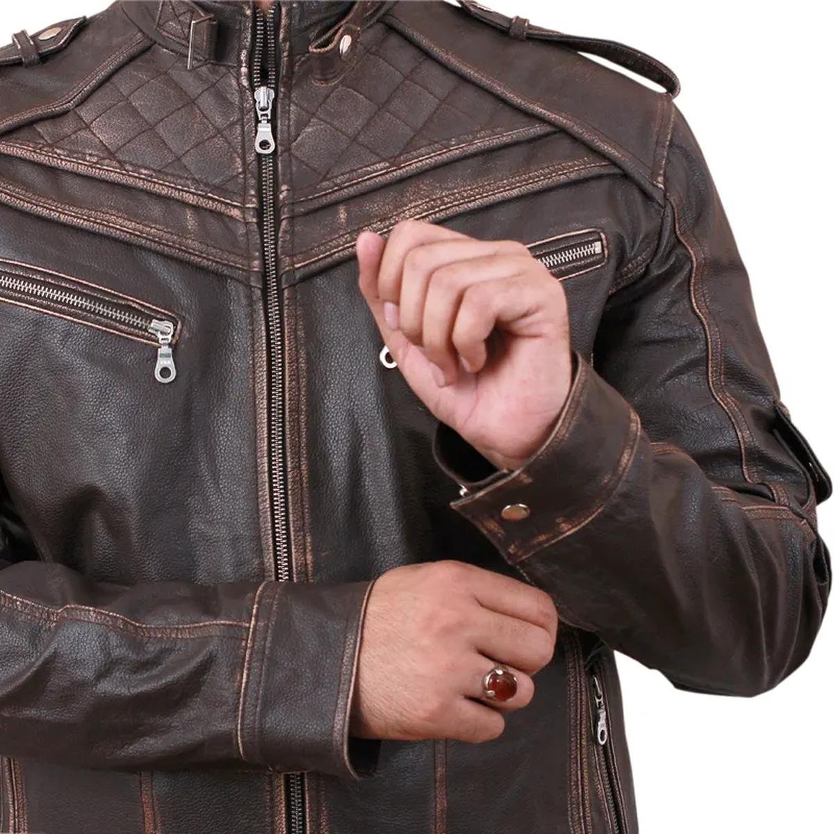 Gefertigt aus erstklassigem Echtleder mit einer markanten, dunkelbraunen Used-Optik, besticht diese Jacke durch einen eleganten und zugleich lässigen Look. Ihre schmale Silhouette und das elegante Design machen sie perfekt für diverse Freizeitaktivitäten – von Partys und Konzerten über Kinoabende bis hin zu Spaziergängen in der Natur. Damit ist sie ein vielseitiges und stilvolles Must-have für jede Garderobe. Mit einem komfortablen Innenfutter aus Viskose und robusten silberfarbenen Beschlägen bietet es sowohl Komfort als auch außergewöhnliche Langlebigkeit.