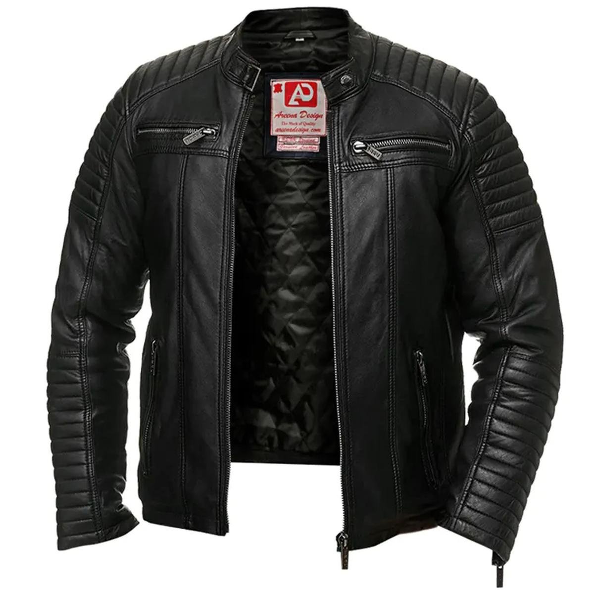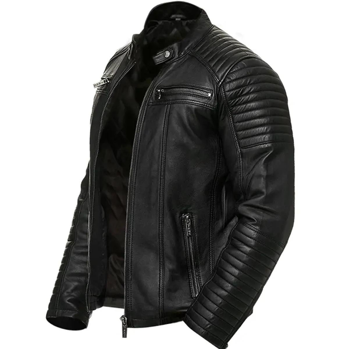 Diese Cafe-Racer-Motorradjacke aus **hochwertigem Echtleder** bietet Komfort und unverwechselbaren Stil. Das glatte Viskosefutter sorgt für eine bequeme Passform, egal ob Sie auf dem Motorrad unterwegs sind oder einen entspannten Abend verbringen. Mit ihrem ikonischen Stehkragen, den langen Ärmeln mit Reißverschlussbündchen und dem sicheren Frontreißverschluss ist sie ein Statement-Piece für den modernen Abenteurer.