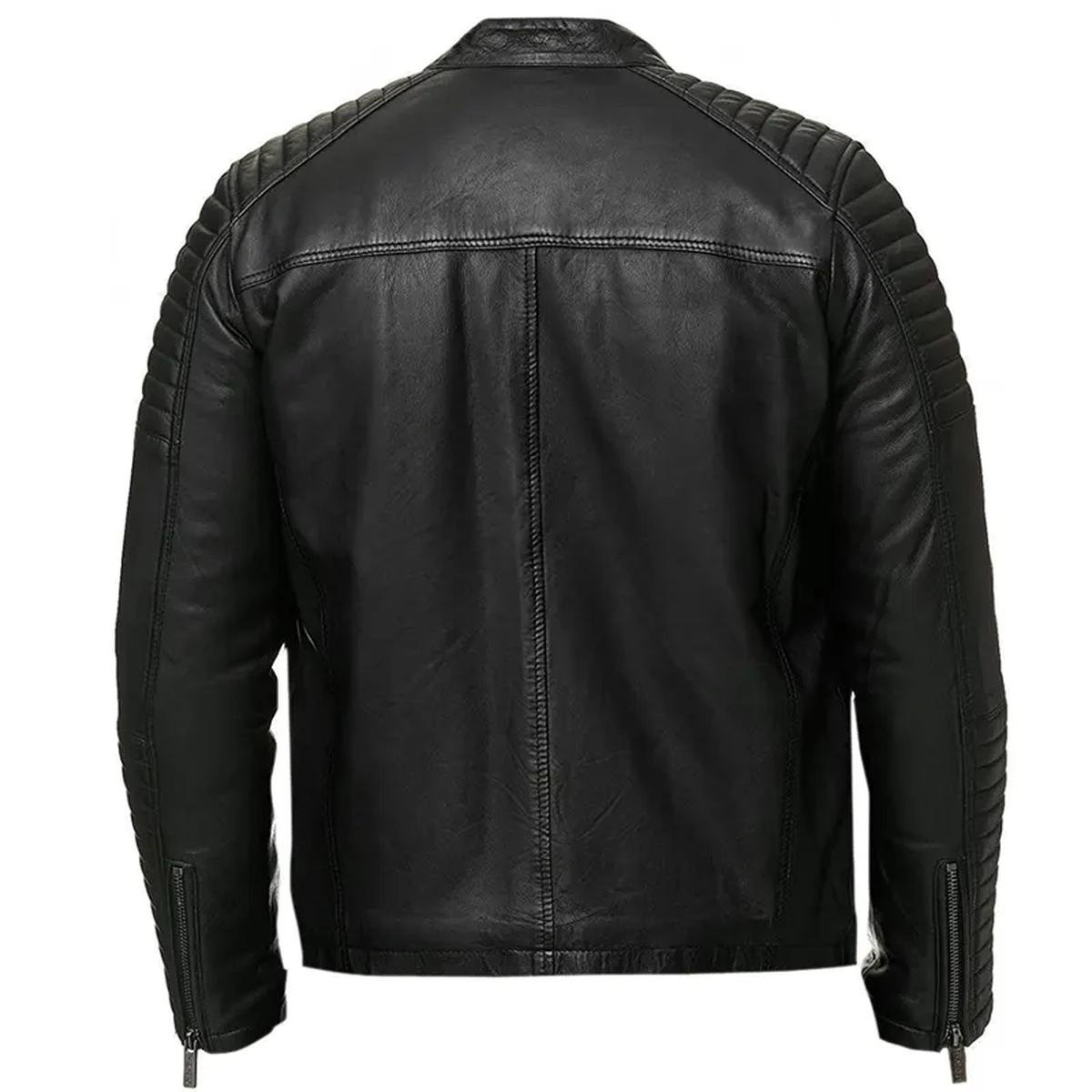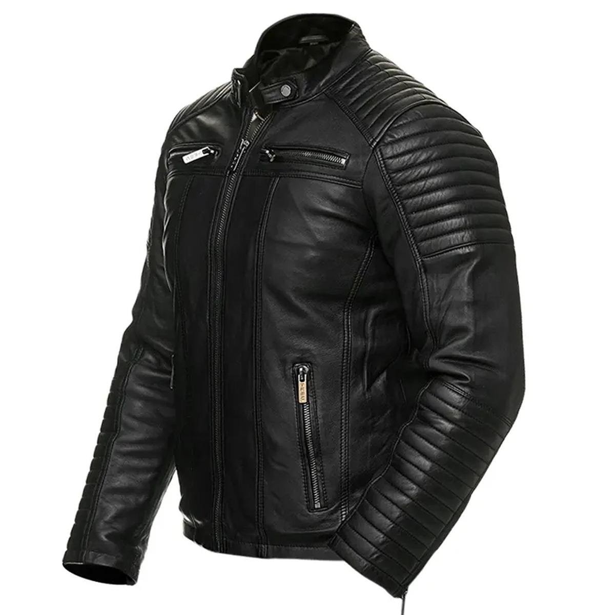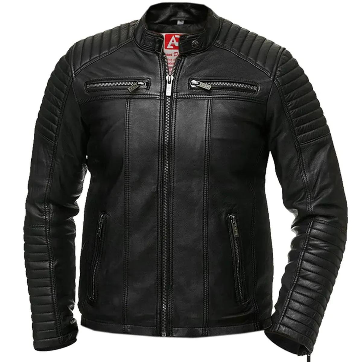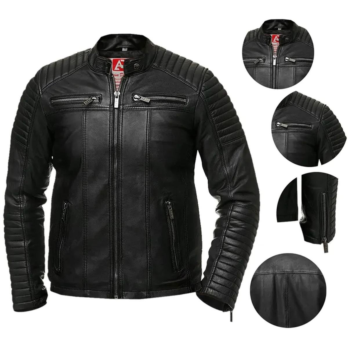 Herren Vintage Retro Biker Echtlederjacke – Schwarz