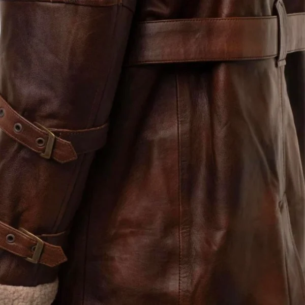 Unser Vintage-Ledermantel mit Sherpa-Futter für Herren ist eine Hommage an diese traditionsreiche Geschichte und vereint authentischen Vintage-Charme mit modernem Komfort. Dieser Mantel bietet robusten Schutz vor Wind und Wetter und besticht durch seine unverwechselbare Ästhetik, die Abenteuerlust und raffinierten Geschmack verkörpert. Damit bleibt er ein unverzichtbares Kleidungsstück in der Garderobe jedes anspruchsvollen Gentlemans.