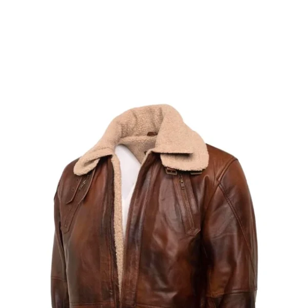 Der **Sherpa-gefütterte Ledermantel** Der Vintage-Ledermantel mit Sherpa-Futter für Herren ist ein unverzichtbares Kleidungsstück für extreme Bedingungen. Inspiriert von robuster Outdoor-Ausrüstung und frühen Fliegerjacken wie der B-3, bot er dank seines dicken, kuscheligen Futters eine unvergleichliche Wärmedämmung. Schnell wandelte er sich von einem militärischen und funktionalen Kleidungsstück zu einem Symbol für zeitlosen Stil und Langlebigkeit für Zivilisten, insbesondere in kälteren Regionen.