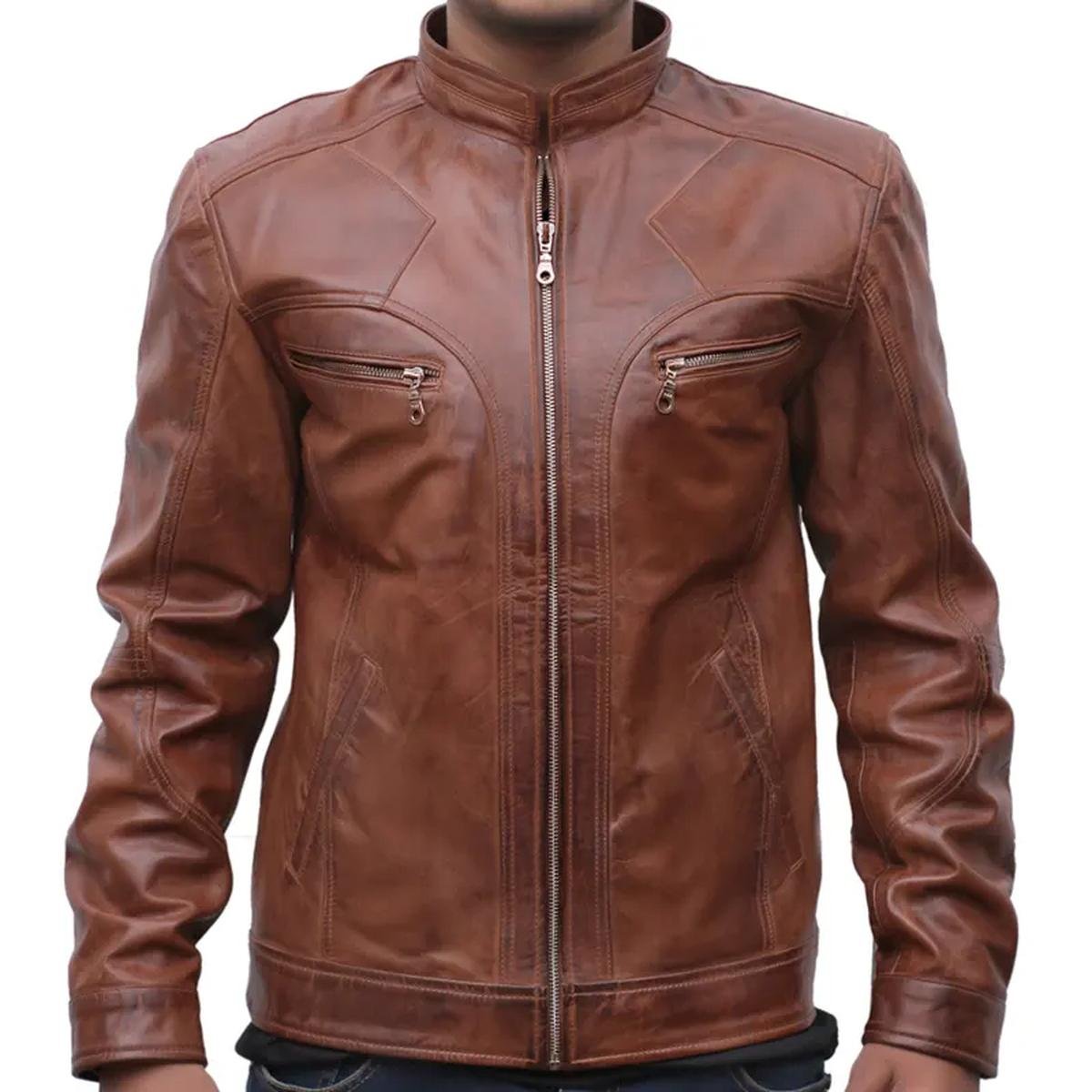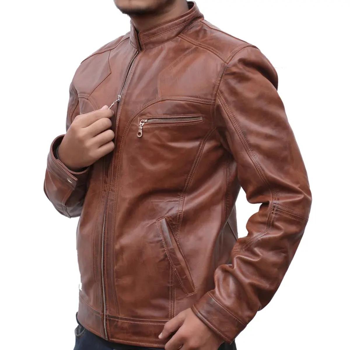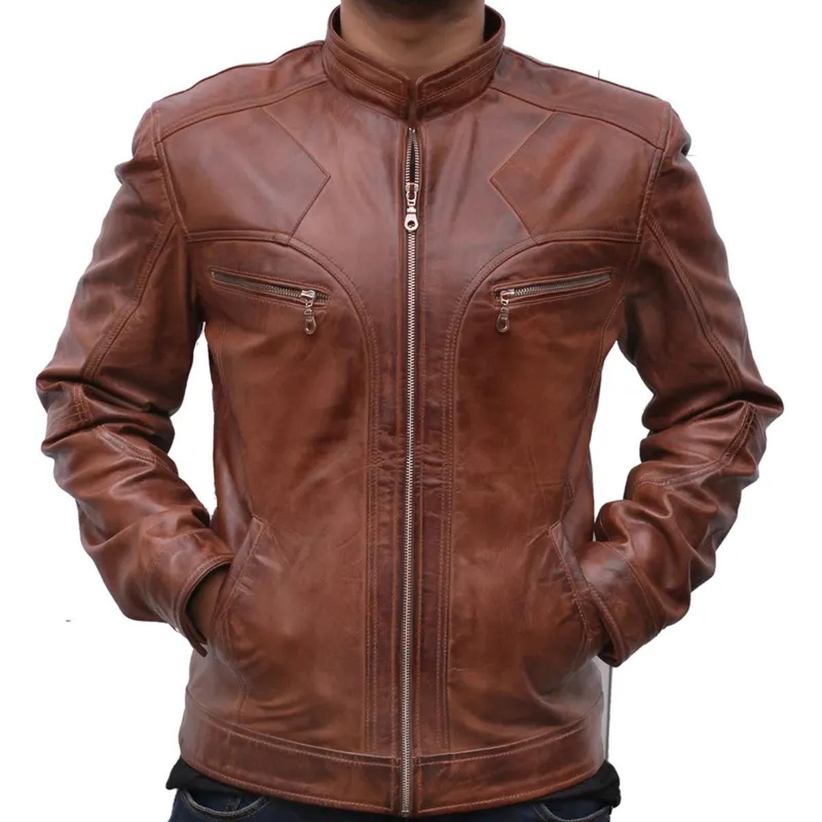 Herren J9 Distressed Biker / Cafe Racer Lederjacke