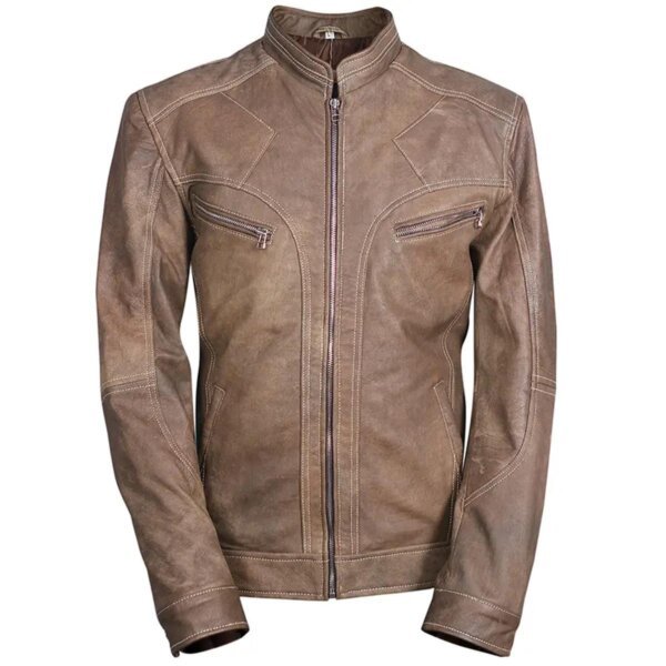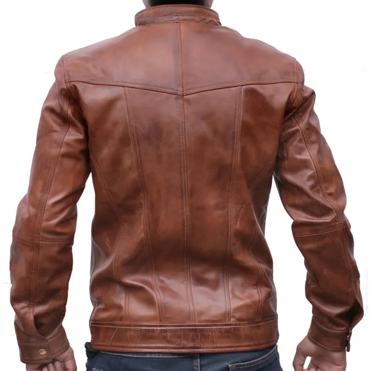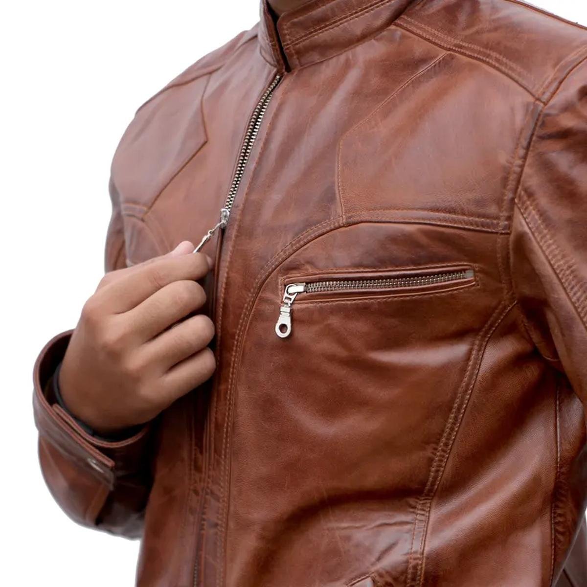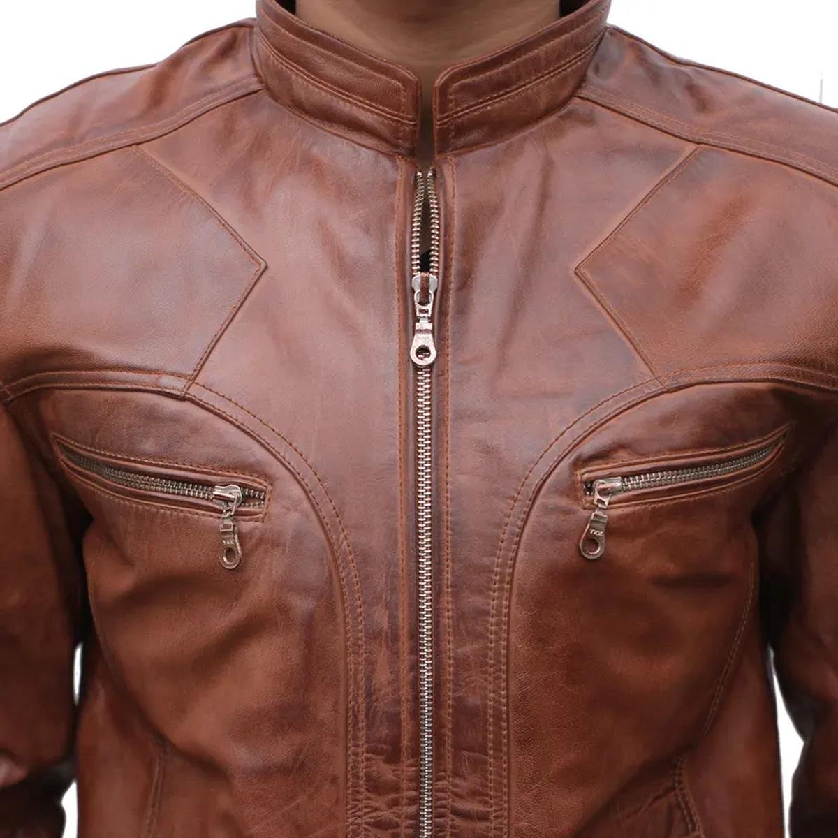 Herren J9 Distressed Biker / Cafe Racer Lederjacke