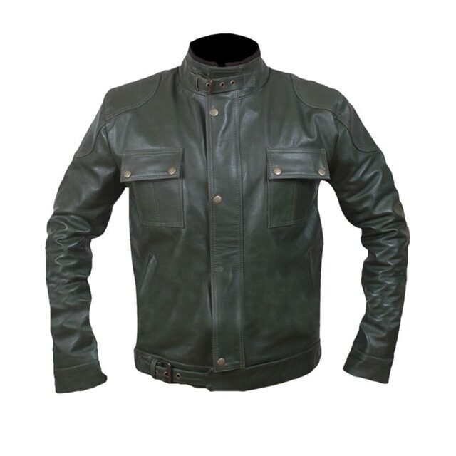 Diese Replika-Jacke ist aus 100 % echtem Leder gefertigt und besticht durch ihre elegante Verarbeitung. Sie bietet sowohl höchste Qualität als auch eine ausdrucksstarke Ästhetik. Mit einem robusten Druckknopfverschluss, einem modernen Kragen mit Druckknopflasche und strategisch platzierten Taschen ist es für alle entworfen, die Form und Funktion gleichermaßen schätzen.