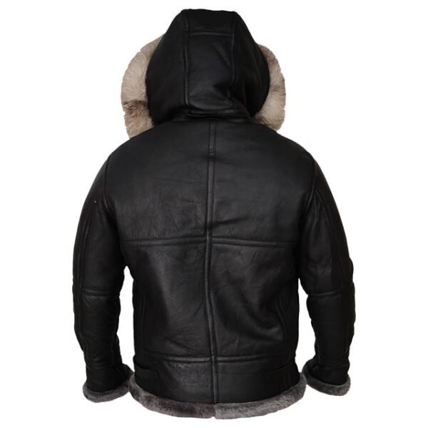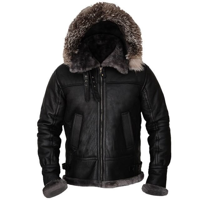 Herren-Jacke aus schwarzem Shearling-Leder Hoodie