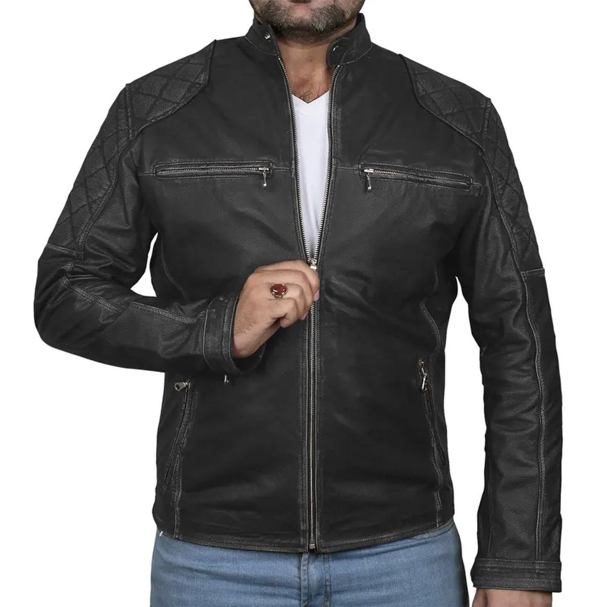 Klassische Biker-Café-Racer-Lederjacke für Herren Jacke