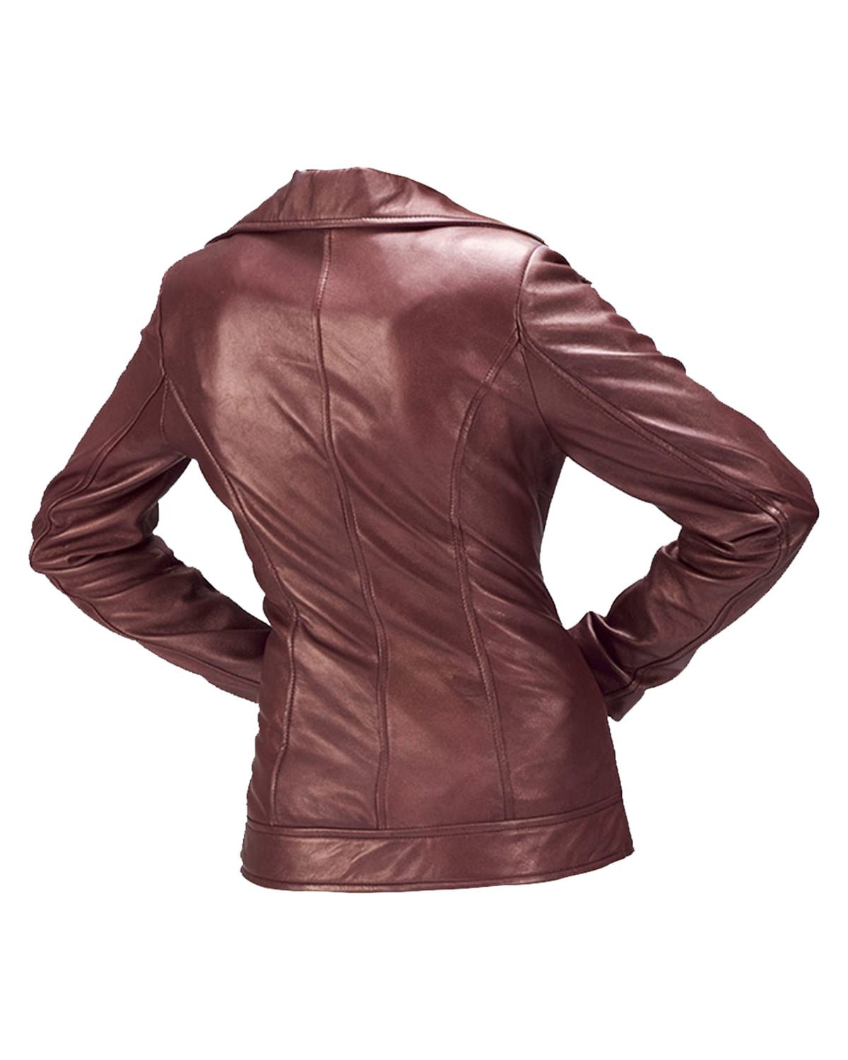 Klassische Biker-Lederjacke für Damen aus Schaffell in Kastanienbraun