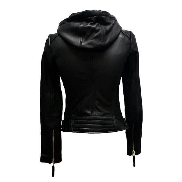 Klassische Biker-Lederjacke für Damen mit abnehmbarem Hoodie