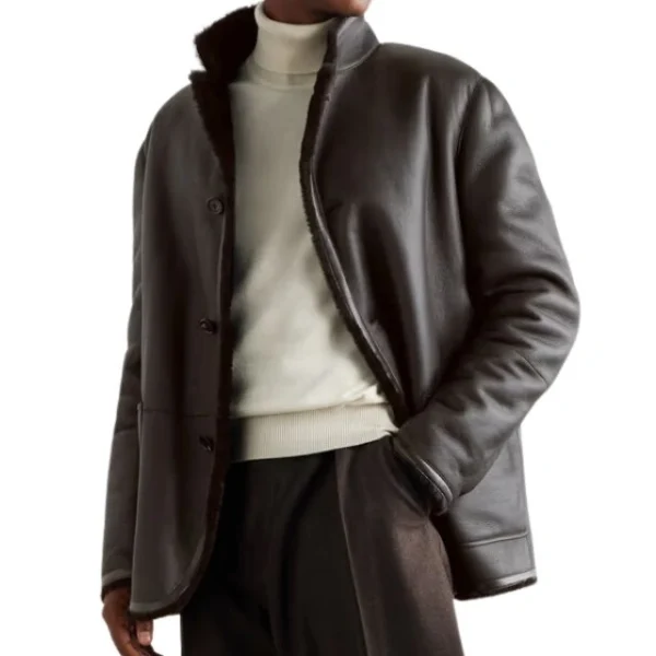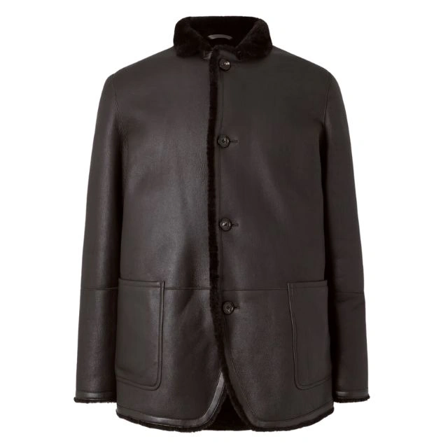 Loro Piana Shearling Trimmed Leather Mantel