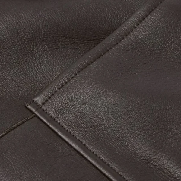 | Farbe & Ausführung | Sattes, dunkelbraunes Leder mit natürlicher Narbung und dezentem Glanz; Cremeweißes/Off-White Shearling-Kunstfell |
