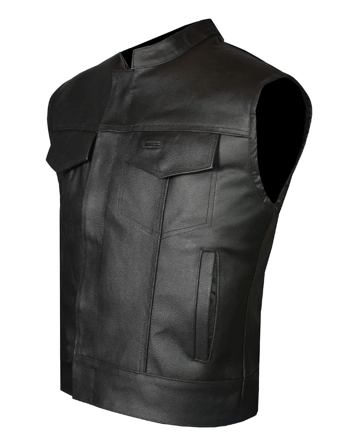 Wir präsentieren unsere Maxwell Biker-Lederweste – der Inbegriff von robuster Eleganz und zeitlosem Stil. Gefertigt aus hochwertigem, echtem Schafsleder, besticht diese Weste durch Langlebigkeit und ein luxuriöses Tragegefühl, das mit der Zeit nur noch schöner wird. Die glatte, schwarze Oberfläche und die robusten Beschläge sorgen für eine markante Optik und garantieren, dass Sie auf der Landstraße oder im Großstadtdschungel auffallen.