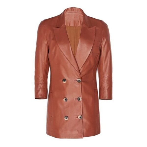 Dieser **trendige, zweireihige Lederblazer mit Knöpfen** ist der Inbegriff von raffinierter Eleganz und bietet perfekten Schutz vor Wind und Kälte, während er gleichzeitig ein starkes Stil-Statement setzt. Gefertigt aus geschmeidigem Lammleder mit einem faszinierenden, braun glänzenden Finish, ist es die ideale Wahl für formelle Anlässe, wichtige Meetings oder einfach, um Ihre Alltagsgarderobe aufzuwerten.