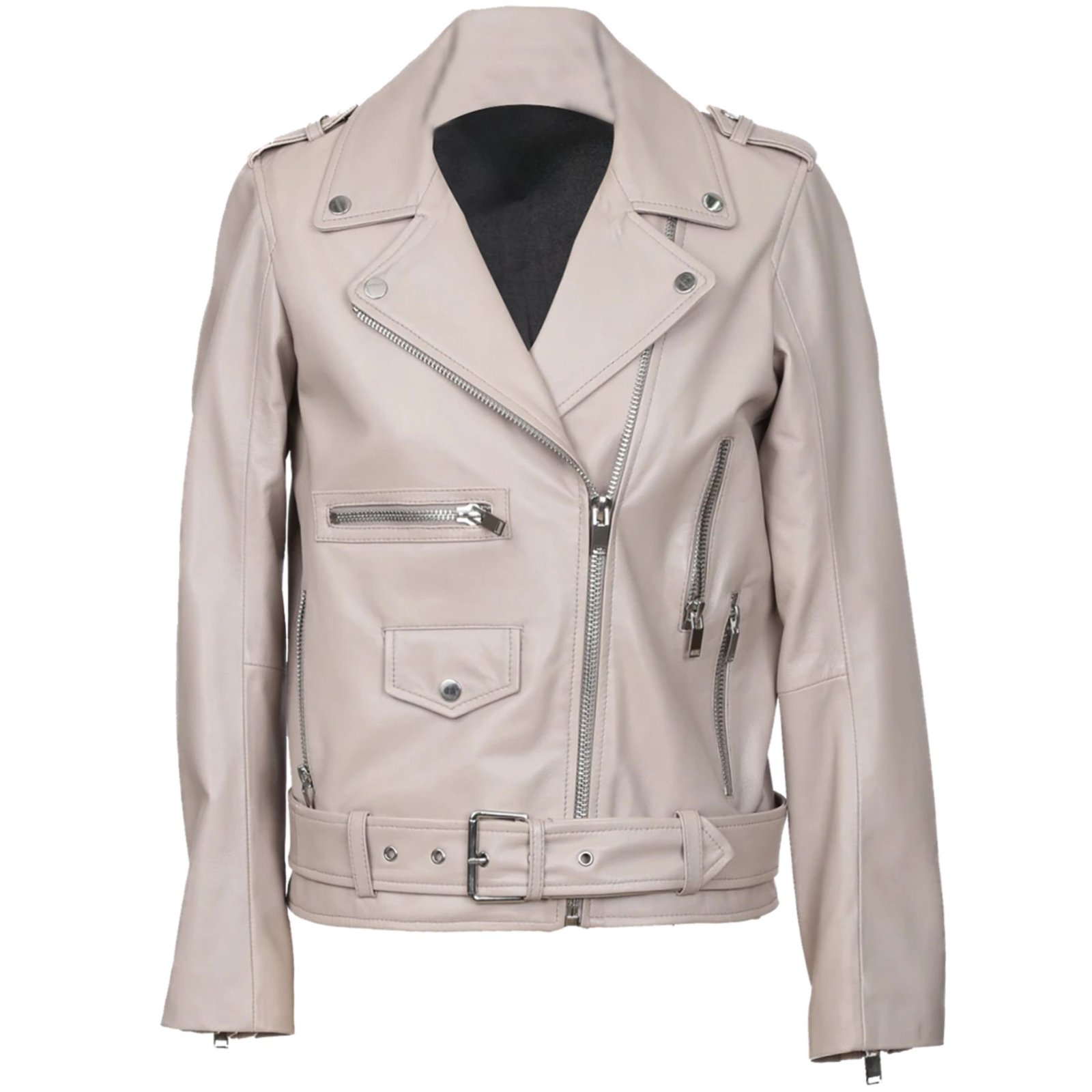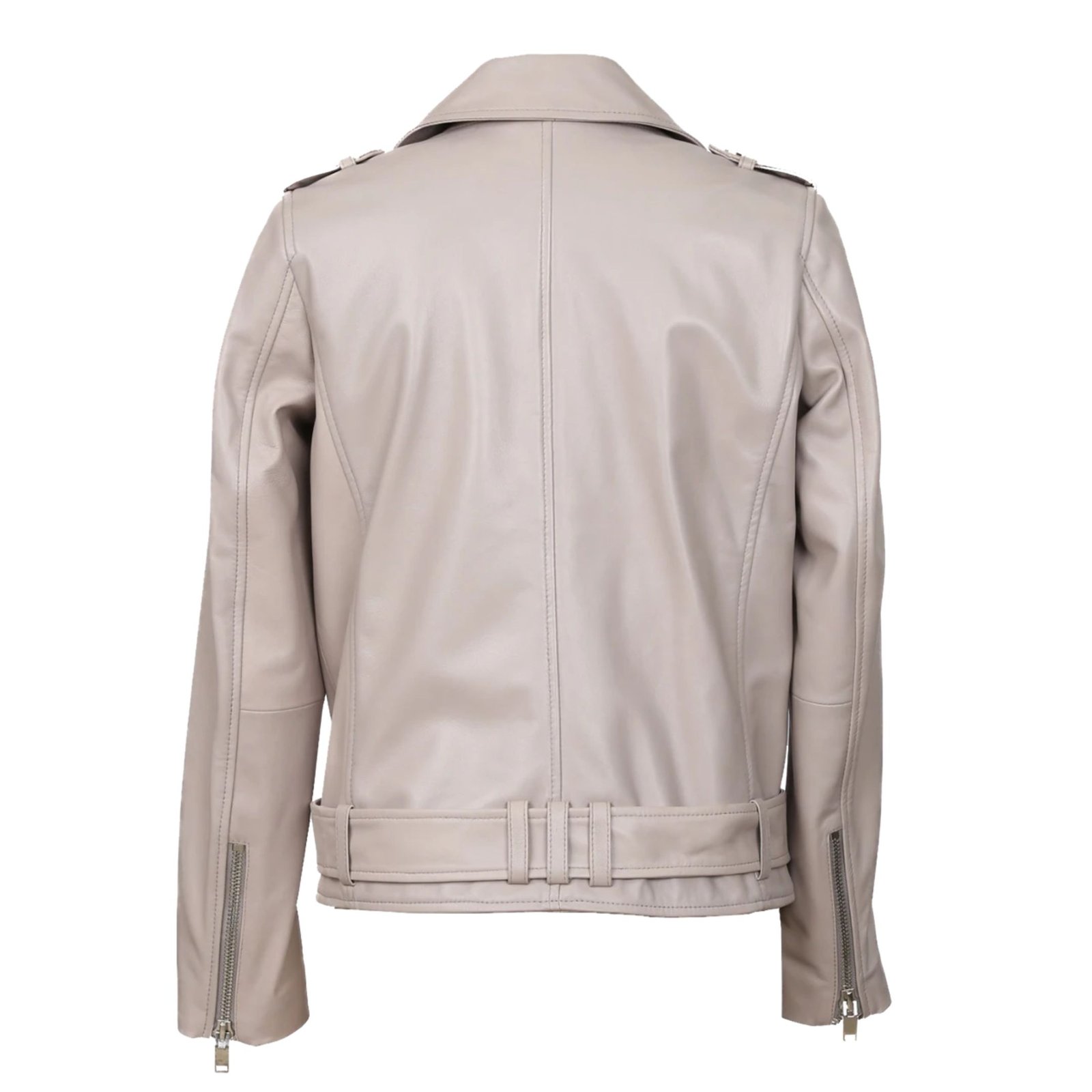 Damen Nora White Belted Biker Lammfell Lederjacke