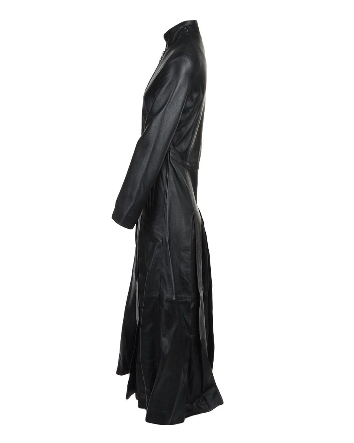 Der bodenlange Ledermantel hat eine lange Tradition. In der Mode hat sich der Ledermantel von praktischer Oberbekleidung zu einem ausdrucksstarken Symbol für Stil und Rebellion entwickelt. Obwohl er nicht auf ein bestimmtes historisches Militärdesign zurückgeht, entstand die „gotische“ Interpretation des Ledermantels stark in Subkulturen wie Punk und Gothic des späten 20. Jahrhunderts.