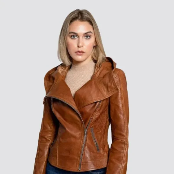 Erleben Sie die perfekte Verschmelzung von modernem Stil und luxuriösem Komfort mit unserer **Sasha Damen-Lederjacke mit Kapuze**. Es ist aus 100% hochwertigem Schafsleder gefertigt, schmiegt sich elegant an Ihre Figur an und bietet ein weiches Tragegefühl sowie außergewöhnliche Langlebigkeit. Der satte Braunton, kombiniert mit dem markanten asymmetrischen Reißverschluss und der integrierten Kapuze, macht diese Jacke zu einer vielseitigen und auffälligen Ergänzung für jede Garderobe.