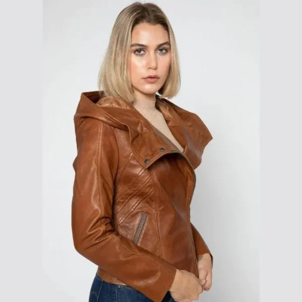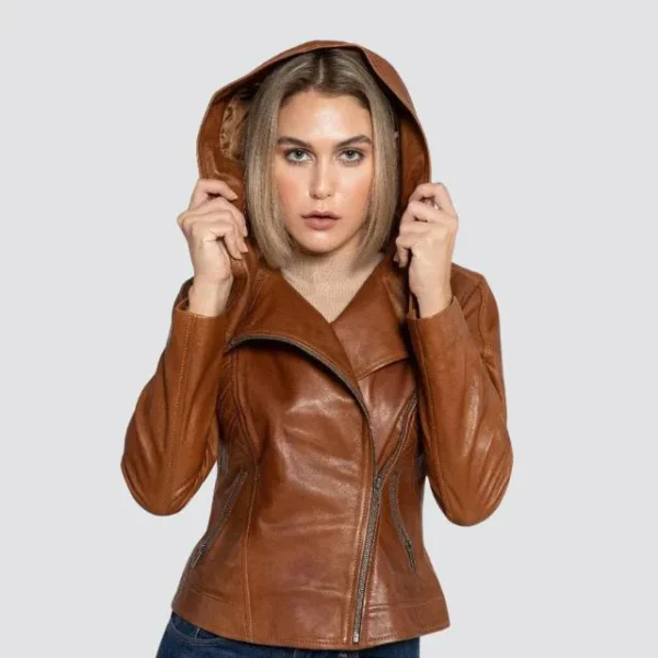 Sasha Damen-Lederjacke mit Kapuze, braun Jacke
