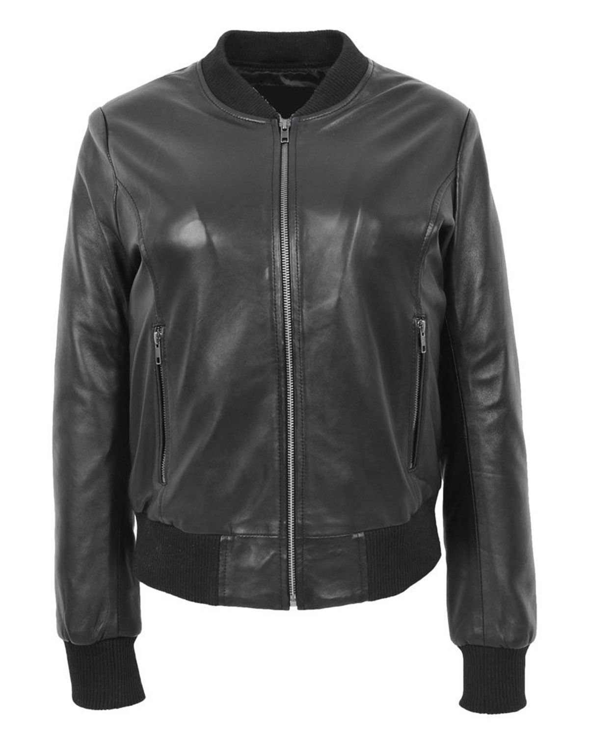 Die Jacke verfügt über einen **klassischen Rippstrickkragen, -bündchen und -saum** für die charakteristische Bomberjacken-Silhouette, ergänzt durch **zwei seitliche Reißverschlusstaschen** für Funktionaler Stil.