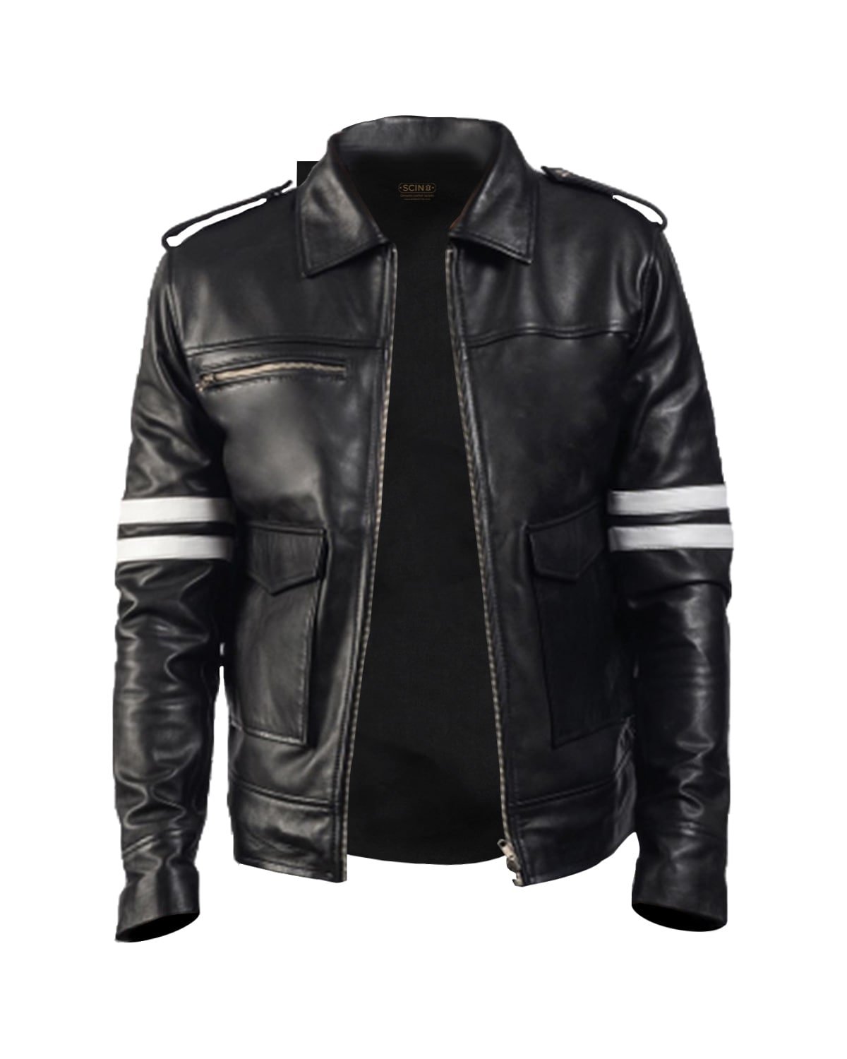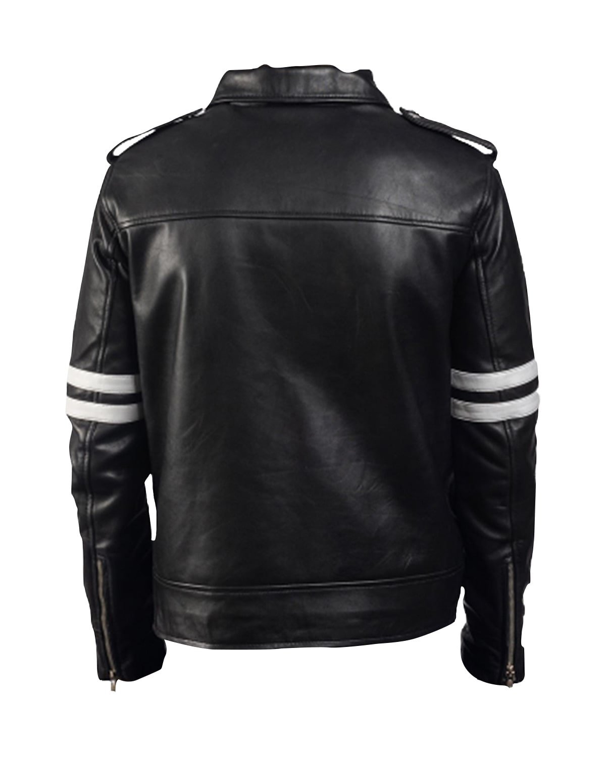 Wir präsentieren unsere gestreifte Biker-Lederjacke für Herren aus Schafsleder – eine markante und stilvolle Ergänzung Ihrer Garderobe, die Funktionalität und Mode perfekt vereint. Gefertigt aus 100 % echtem Schafsleder, bietet diese Jacke außergewöhnliche Langlebigkeit, ein weiches, geschmeidiges Tragegefühl und zeitlose Eleganz. Das glatte Polyesterfutter garantiert höchsten Tragekomfort und bietet zusätzliche Wärme an kühleren Tagen.