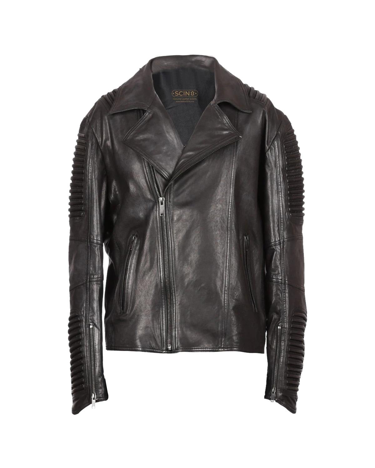 Herren-Bikerjacke aus Schafsleder mit gepolsterten Schultern Jacke